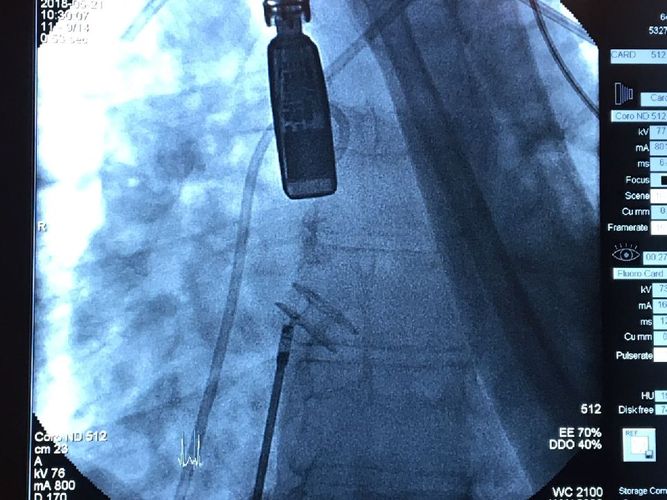Implant zbudowany z nitinolowej plecionki umieszczany jest w przegrodzie międzyprzedsionkowej w miejscu wytworzonego wcześniej otworu. Celem zabiegu jest wytworzenie przecieku międzyprzedsionkowego i odbarczenie prawego przedsionka u pacjentów ze skrajną postacią nadciśnienia płucnego. Pierwsze tego typu urządzenie zostało wszczepione w USA w 2015 r. Implant znajduje się obecnie w fazie badań przedklinicznych. Pojedyncze jak do tej pory zabiegi na świecie wykonywano w wyjątkowych sytuacjach u pacjentów, u których wykorzystano wszelkie możliwości farmakologicznego leczenia nadciśnienia płucnego.