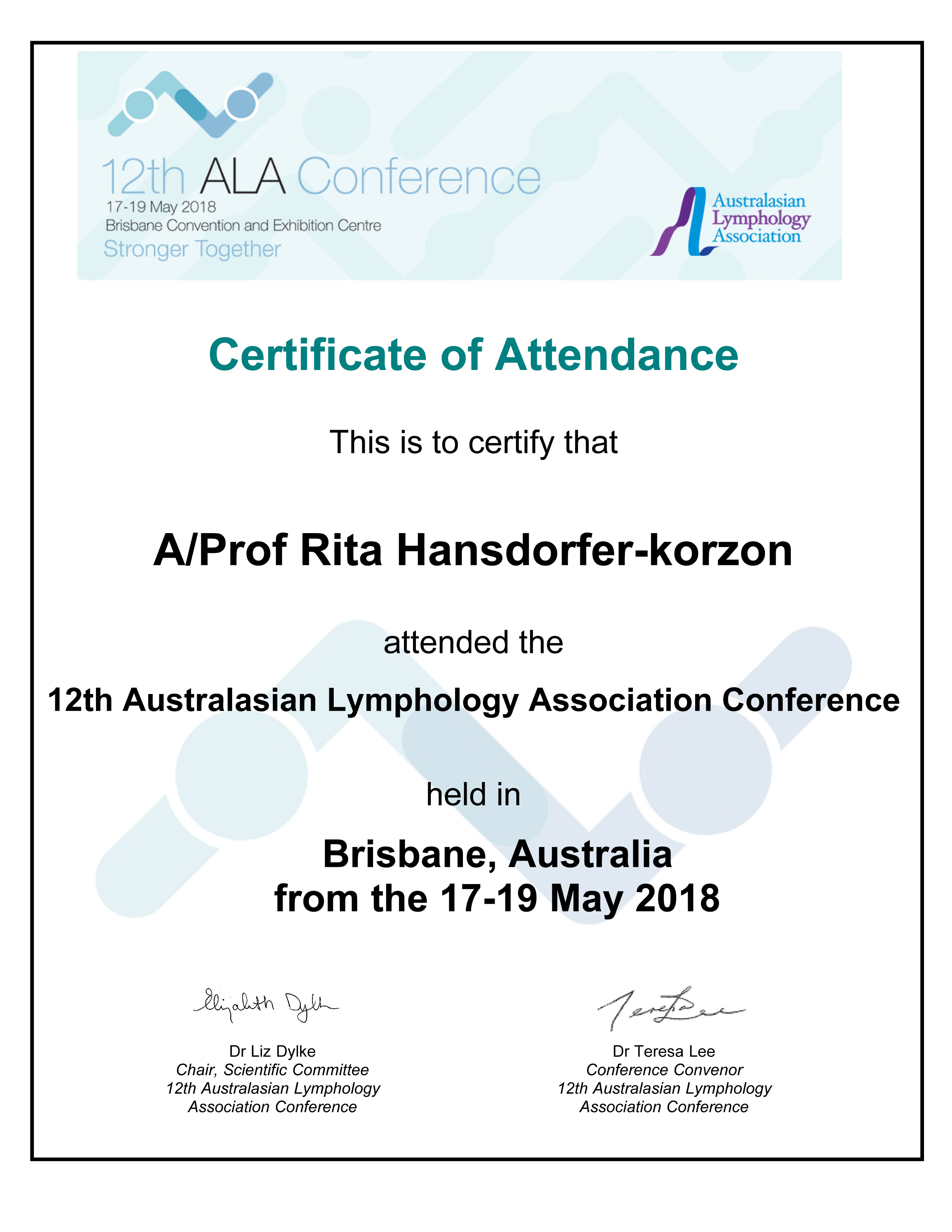 Dr hab. Rita Hansdorfer-Korzon, kierownik Zakładu Fizjoterapii po raz trzeci w przeciągu ostatnich dwóch lat (Darwin 5.2016 r., Melbourne 2.2018 r.) uczestniczyła na zaproszenie Australasian Lymphology Association w kongresie „The 12th Australasian Lymphology Association Conference 2018”. Odbył się on w dniach 16-20 maja br. w Brisbane w Australii. Wydarzenie to było kolejnym cyklicznym spotkaniem organizowanym przez dr Teresa Lee oraz dr Liz Dylke, przewodniczącą komitetu naukowego oraz ALA. Dr hab. Rita Hansdorfer-Korzon w sesji „An Overview of Lymphatic Science Research” przedstawiła wyniki nowatorskiej metody postępowania fizjoterapeutycznego z wykorzystaniem gorsetów kompresyjnych o niskiej klasie ucisku u chorych leczonych z powodu nowotworu piersi pt. „Usefulness of low compression corsets in prevention of lymphoedema in patients after mastectomy with axillary lymphadenectomy.” Zagadnienie to było tematem przewodnim w cyklu publikacji w przewodzie habilitacyjnym. Prezentacja cieszyła się bardzo dużym zainteresowaniem, ponieważ wyniki kilkuletnich badań doc. Korzon są pierwszymi dostępnymi w literaturze opracowaniami na temat zastosowania i oddziaływania gorsetów kompresyjnych I klasy ucisku w redukcji obrzęku limfatycznego po operacyjnym leczeniu raka piersi z limfadenektomią pachową, a także w redukcji dolegliwości bólowych związanych z leczeniem chirurgicznym raka piersi. Większość pytań odnosiła się do możliwości wykorzystania gorsetów w profilaktyce przeciwobrzękowej u tych pacjentek.