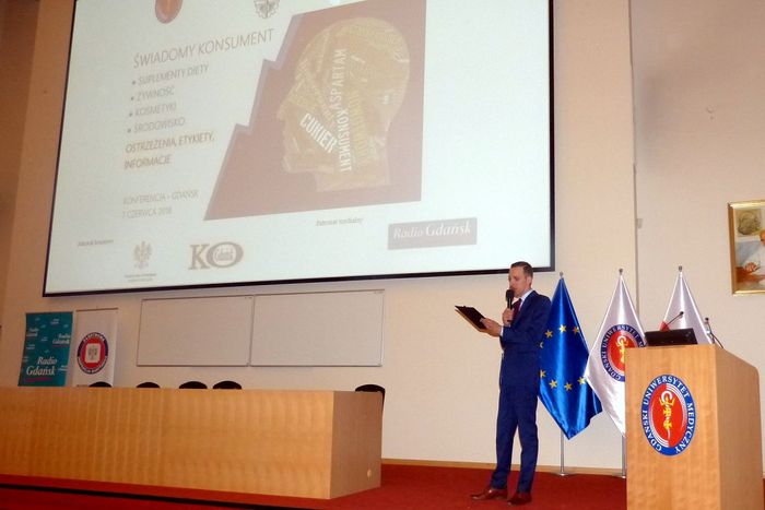 Gdański Uniwersytet Medyczny przy współpracy z Wojewódzką Stacją Sanitarno-Epidemiologiczną oraz w partnerstwie z Wojewódzkim Ośrodkiem Medycyny Pracy zorganizował po raz drugi konferencję popularno-naukową poświęconą promocji zdrowia. Tegoroczny temat „Świadomy konsument – suplementy diety, żywność, kosmetyki, środowisko. Ostrzeżenia, etykiety, informacje” przyciągnął licznych uczestników z trójmiejskich szkół, samorządów, instytucji oraz samych studentów. Spotkanie odbyło się 7 czerwca br. w Atheneum Gedanense Novum GUMed. Zgromadzonych gości powitali: rektor prof. Marcin Gruchała, pomorski państwowy wojewódzki inspektor sanitarny Tomasz Augustyniak i dyrektor Wojewódzkiego Ośrodka Medycyny Pracy dr Małgorzata Bartoszewska-Logan.