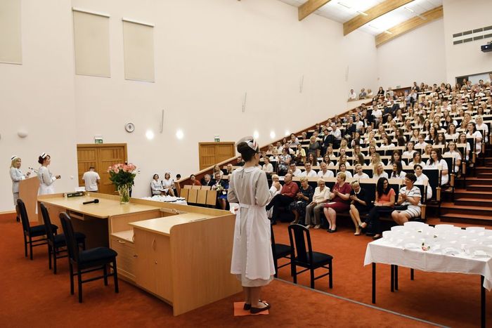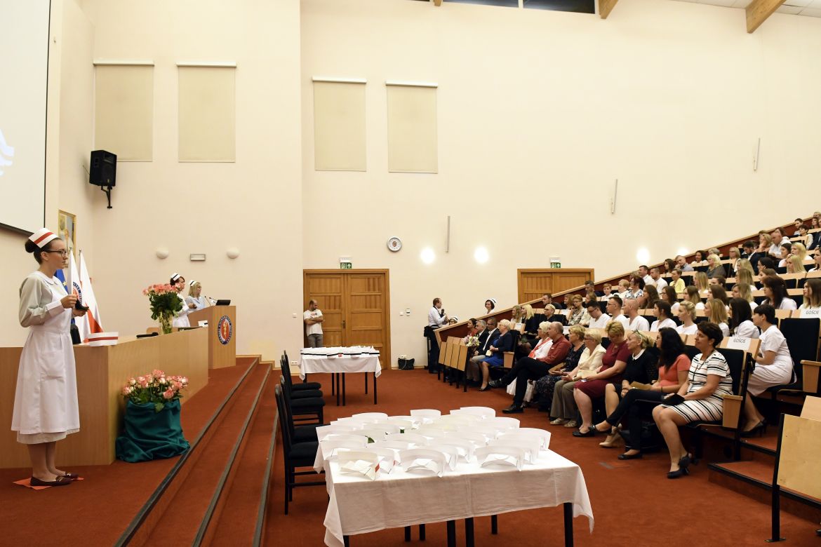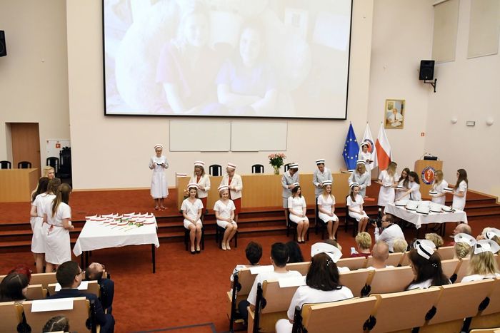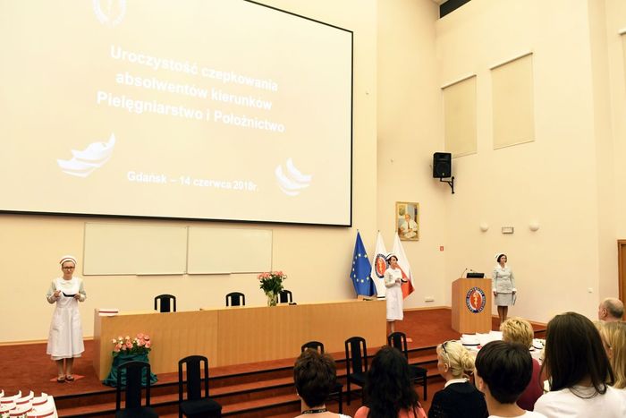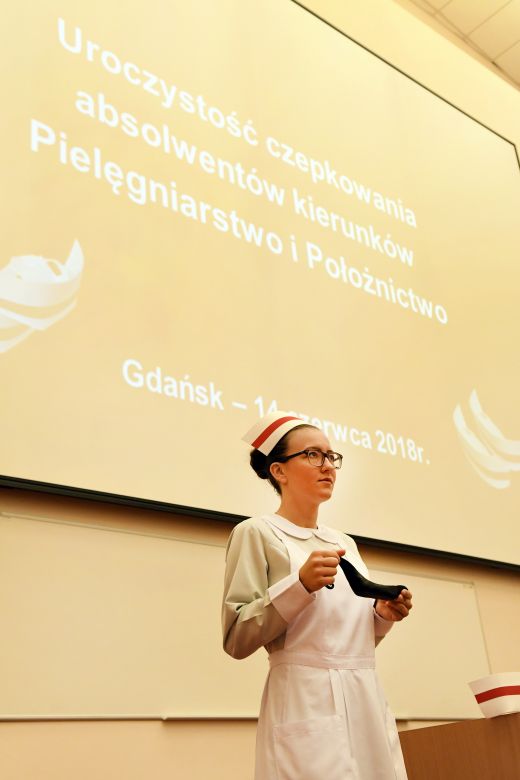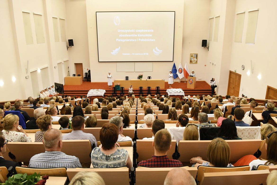 W wydarzeniu obok absolwentów oraz ich najbliższych udział wzięli przedstawiciele władz Uczelni, wykładowcy oraz zaproszeni goście. Uroczystość rozpoczęła się od wniesienia lampionów przez studentki ubrane w tradycyjne stroje. Lampy przypominają o prekursorce zawodu – Florencji Nightingale i symbolizują życie powierzane w ręce pielęgniarek i położnych. Jako pierwsza głos zabrała prodziekan Wydziału Nauk o Zdrowiu z Oddziałem Pielęgniarstwa i Instytutem Medycyny Morskiej i Tropikalnej oraz kierownik Katedry Pielęgniarstwa dr hab. Aleksandra Gaworska-Krzemińska. Każdy z absolwentów wypowiedział tekst ślubowania, który stanowi fragment Kodeksu Etyki Zawodowej Pielęgniarki i Położnej Rzeczpospolitej Polskiej, przysięgając rzetelnie realizować obowiązki zawodowe, przestrzegać zasad etyki zawodu, służyć pomocą potrzebującym oraz dbać o honor Uczelni. Pielęgniarki i pielęgniarze otrzymali czepki z rąk: dr hab. Aleksandry Gaworskiej-Krzemińskiej, dr hab. Wioletty Mędrzyckiej-Dąbrowskiej, kierownik Zakładu Pielęgniarstwa Anestezjologicznego i Intensywnej Opieki GUMed oraz mgr Sylwii Terech-Skóry, a czepkowania absolwentów położnictwa dokonały dr Jolanta Olszewska oraz dr Agnieszka Czerwińska-Osipiak.