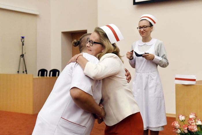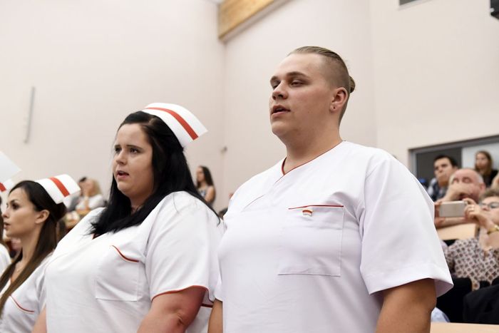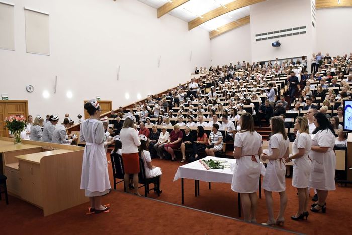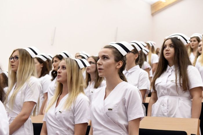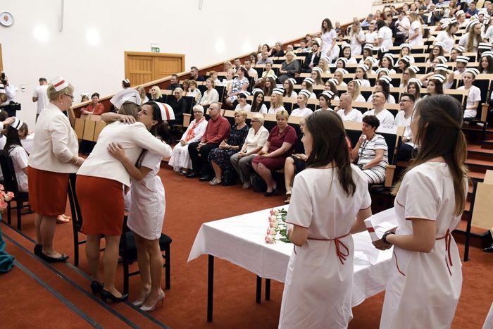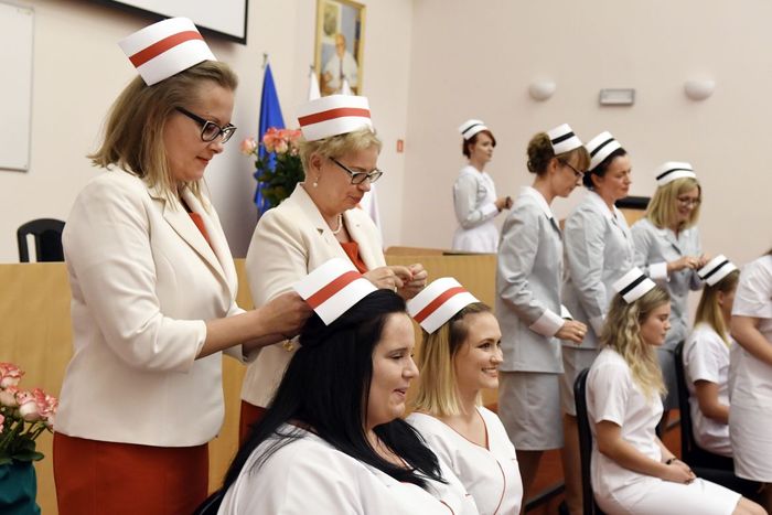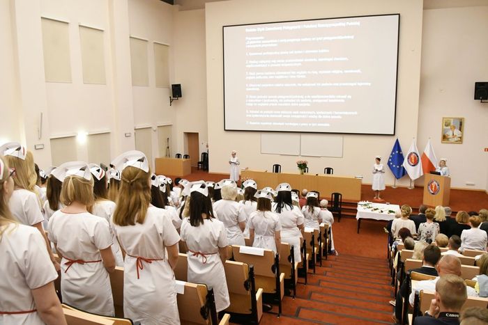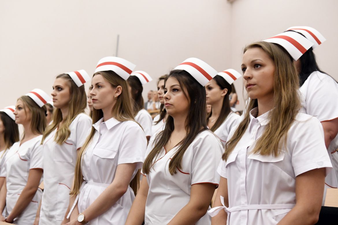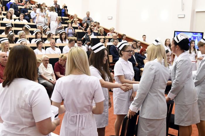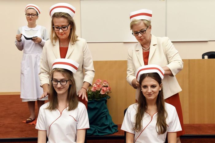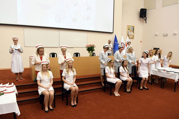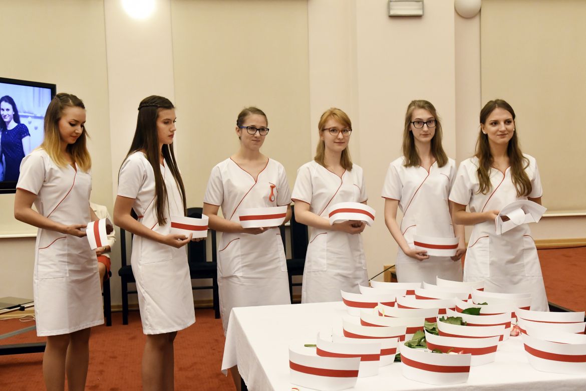 Za nami uroczystość czepkowania absolwentów kierunków pielęgniarstwo i położnictwo. Tytuł licencjata pielęgniarstwa uzyskało 62, zaś tytuł licencjata położnictwa 34 studentów. Uroczyste ślubowanie odbyło się w Atheneum Gedanense Novum 14 czerwca br.