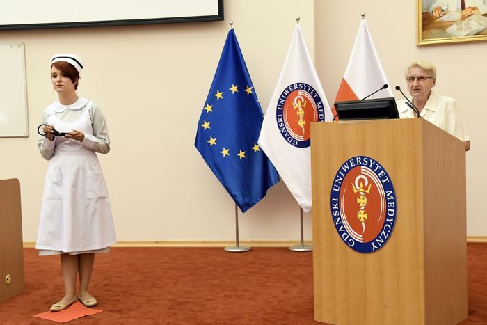 W trakcie uroczystości głos zabrali: prorektor ds. studenckich dr hab. Tomasz Smiatacz, pielęgniarki i położne związane z Okręgową Izbą Pielęgniarek i Położnych – przewodnicząca mgr Anna Czarnecka, wiceprzewodnicząca Danuta Adamczyk Wiśniewska oraz pierwsza przewodnicząca Władysława Murawska, a także dyrektor Departamentu Zdrowia Urzędu Marszałkowskiego Województwa Pomorskiego Marzena Mrozek.