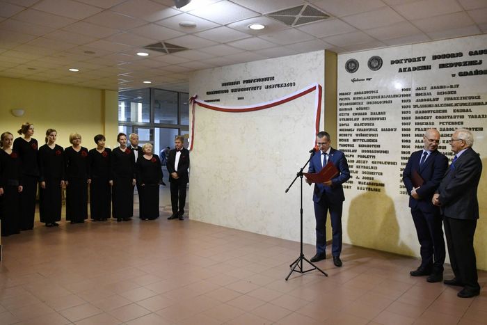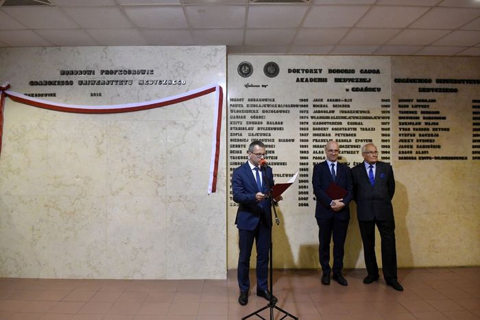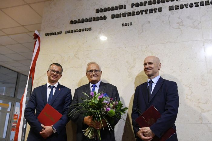 Prof. Wiesław Makarewicz to pierwszy naukowiec, który został wyróżniony godnością Honorowego Profesora Gdańskiego Uniwersytetu Medycznego. Odsłonięcie tablicy pamiątkowej z nazwiskiem Profesora odbyło się 25 czerwca br. w Atheneum Gedanense Novum.