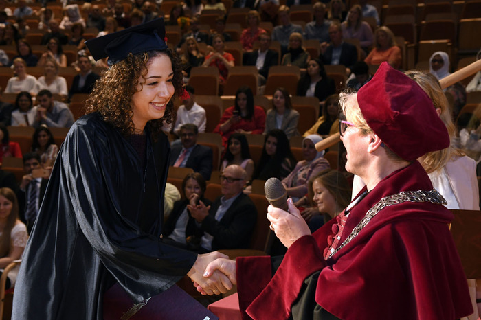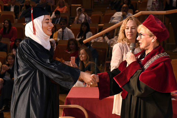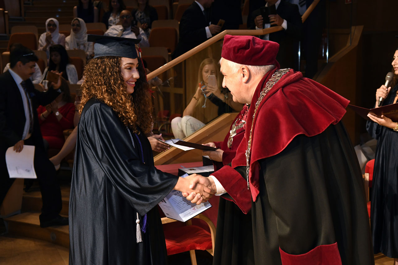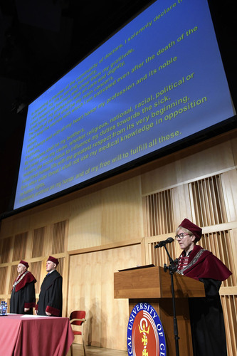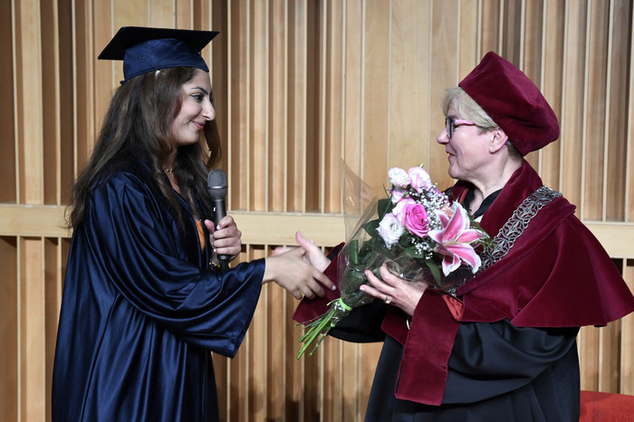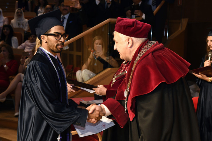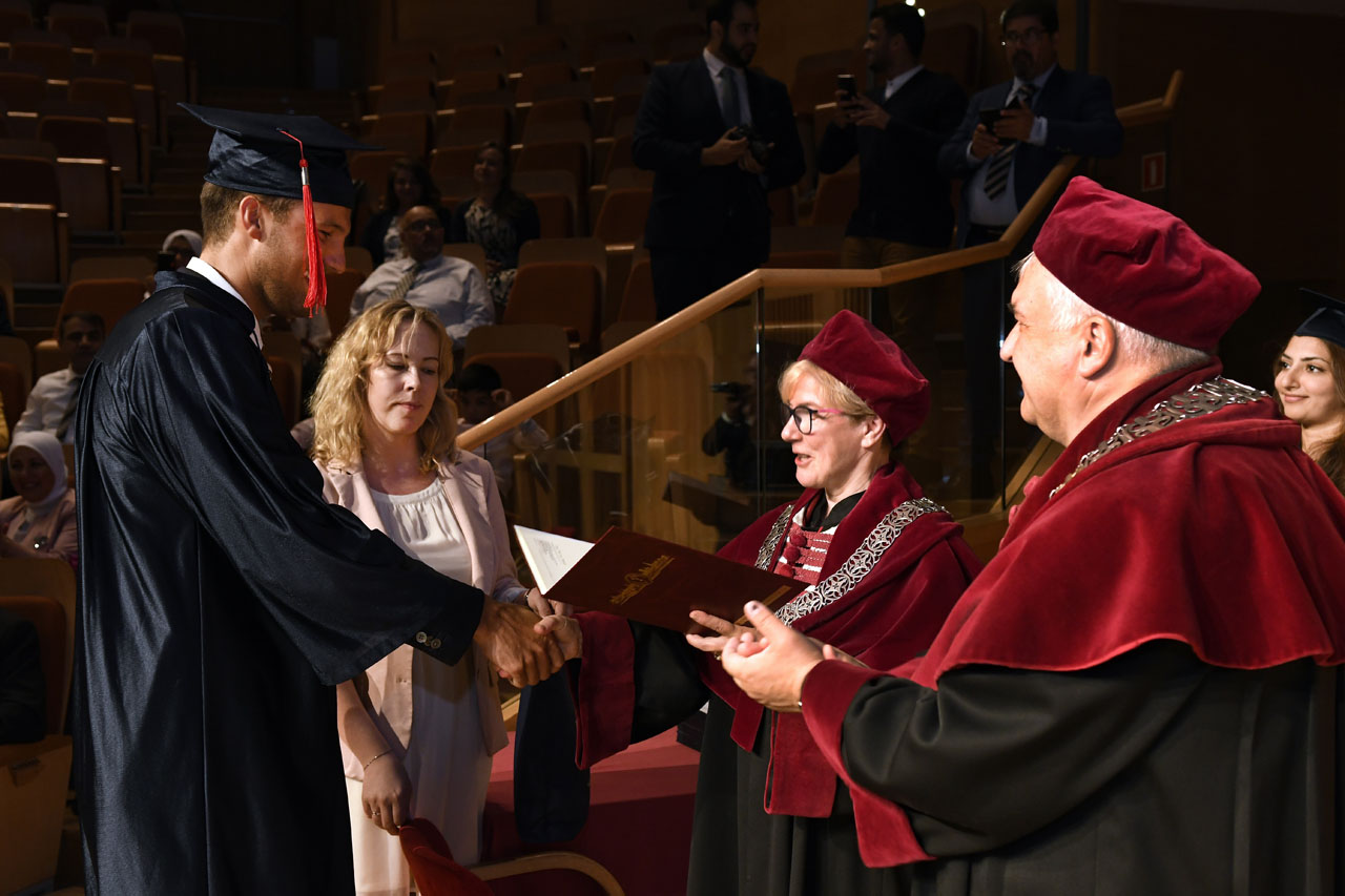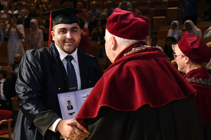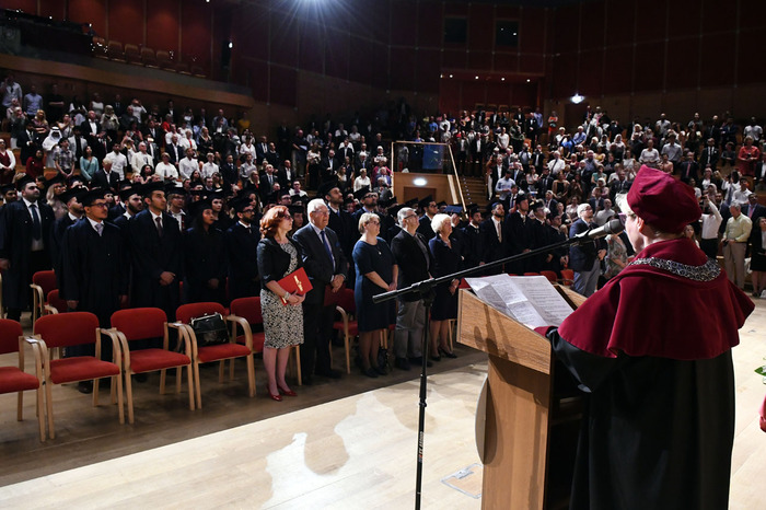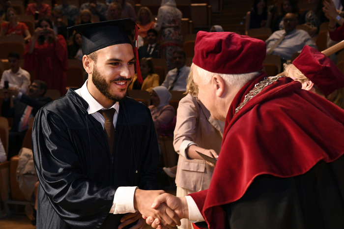 Siedemdziesięciu pięciu absolwentów Wydziału Lekarskiego kierunku lekarskiego anglojęzycznego rocznika 2012-2018 odebrało 30 czerwca br. swoje dyplomy z rąk prorektora ds. studenckich dr. hab. Tomasza Smiatacza oraz dziekan Wydziału Lekarskiego prof. Marii Dudziak. Dyplomatorium odbyło się w Polskiej Filharmonii Bałtyckiej im. Fryderyka Chopina. Przemówienia wygłosili m.in.: dr hab. Tomasz Smiatacz, prof. Maria Dudziak, prof. Michał Żmijewski – prodziekan Wydziału Lekarskiego, lek. dent. Ewa Siewierska-Chomeniuk – wiceprezes Okręgowej Rady Lekarskiej w Gdańsku, prof. Wiesław Makarewicz – wiceprezes Stowarzyszenia Absolwentów GUMed oraz Sarah Khalid, Marie Low i Walid Daabas – absolwenci rocznika 2012-2018. W imieniu studentów absolwentów pożegnała Lisa Karlsson, przedstawicielka studentów V roku English Division.