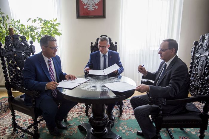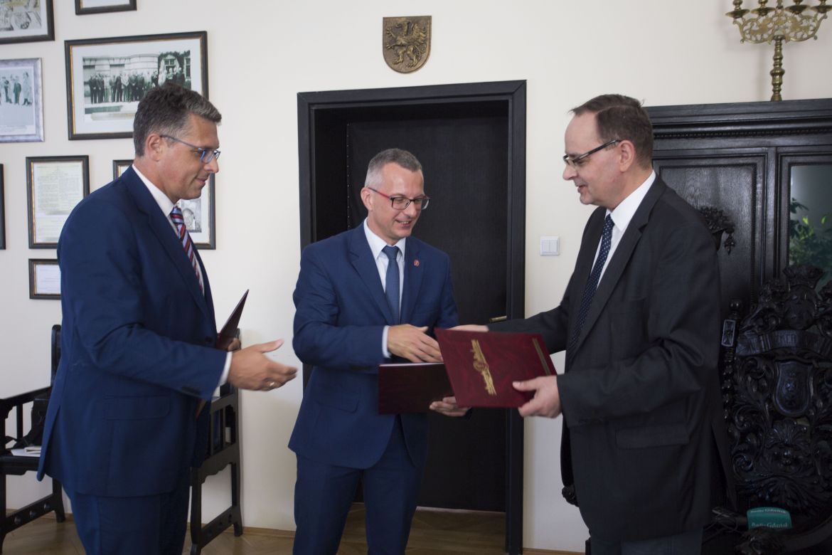 Trójstronne porozumienie o współpracy w zakresie edukacji zdrowotnej mieszkańców naszego regionu podpisali 22 sierpnia br. prof. Marcin Gruchała, rektor Gdańskiego Uniwersytetu Medycznego, Jakub Kraszewski, dyrektor naczelny Uniwersyteckiego Centrum Klinicznego w Gdańsku i Dariusz Wasielewski, prezes Zarządu Radia Gdańsk SA. Przez kolejny rok instytucje będą wspólnie działać na rzecz szerzenia wiedzy o: zdrowiu, profilaktyce chorób i metodach leczenia dostępnych zwłaszcza na Pomorzu, realizując autorski cykl „Bądź zdrów – bez kolejki”. Zainicjowane w 2017 r. działania GUMed i Radia Gdańsk odbywać się będą w innej niż dotychczas formie. Tradycyjnie raz w miesiącu naukowcy GUMed różnych specjalności spotykać się będą ze słuchaczami w murach Uniwersyteckiego Centrum Klinicznego, a nie jak dotychczas w sali koncertowej im. Janusza Hajduna w Radiu Gdańsk.