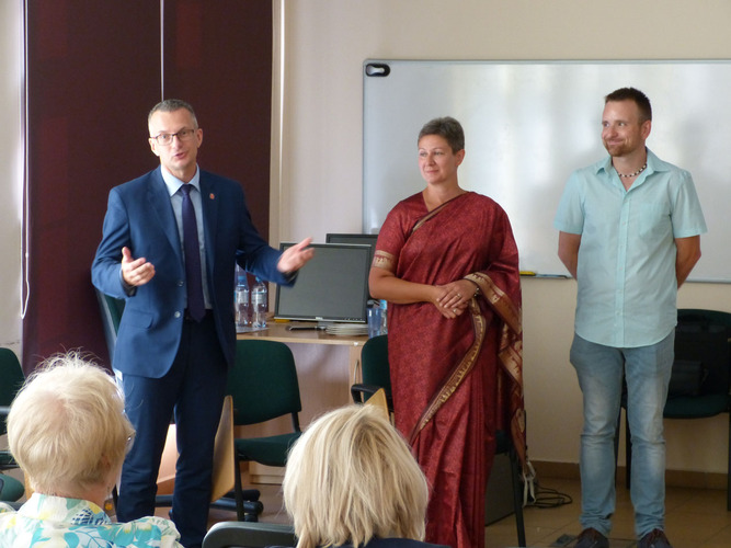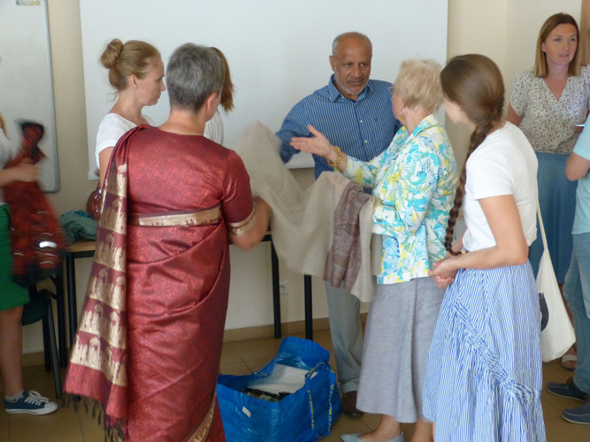 Pracownicy administracji Gdańskiego Uniwersytetu Medycznego uczestniczyli 23 sierpnia br. w Dniu Indyjskim, pierwszym z serii wydarzeń przybliżających kulturę różnych krajów organizowanych przez Dział Współpracy z Zagranicą i Projektów Rozwojowych. Szkolenie prowadziła dr hab. Agnieszka Kuczkiewicz-Fraś, adiunkt w Instytucie Bliskiego i Dalekiego Wschodu UJ, orientalistka i językoznawca, która swoją prezentacją przybliżyła słuchaczom historię i kulturę Indii. Dzięki zaproszonej prelegentce pracownicy mogli zrozumieć różnorodność kulturową Indii i poznać lepiej ten fascynujący region. Ponadto goście mieli okazję spróbować regionalnej kuchni, przymierzyć tradycyjną odzież oraz obejrzeć regionalny taniec. Współorganizatorem Dnia Indyjskiego był mieszkający od 25 lat w Polsce Sunil Ahuja, założyciel Centrum Kultury Indyjskiej w Gdańsku. Pomysłodawcą serii szkoleń jest Ewa Kiszka, kierownik Działu Współpracy z Zagranicą i Projektów Rozwojowych.