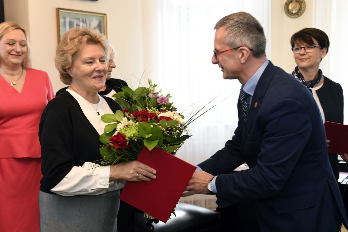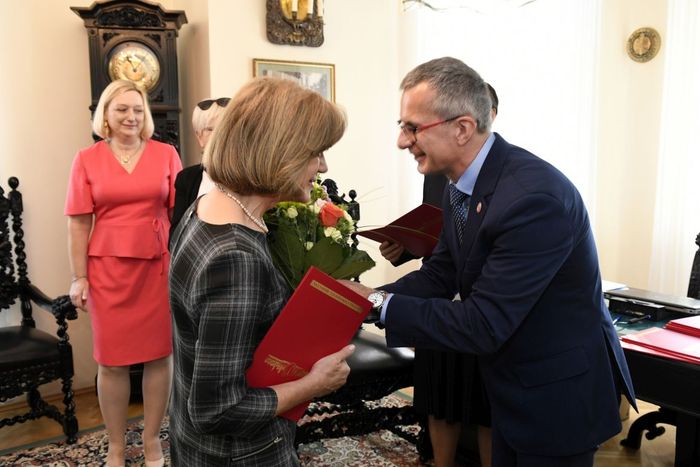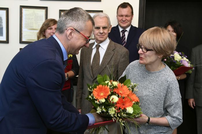 - Kierownik nadaje ton i gwarantuje jakość pracy jednostki. Bardzo dziękuję za lata kierowania zespołami, nadzorowania dydaktyki, wykształcenia kadry znakomitych badaczy, w tym Państwa następców, którzy będą kontynuować państwa misję – powiedział rektor Gruchała. – Wśród Państwa są również moi nauczyciele, którym osobiście chciałem podziękować za przekazaną wiedzę, umiejętności, gwarantujące dobre przygotowanie do pracy zawodowej.