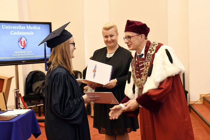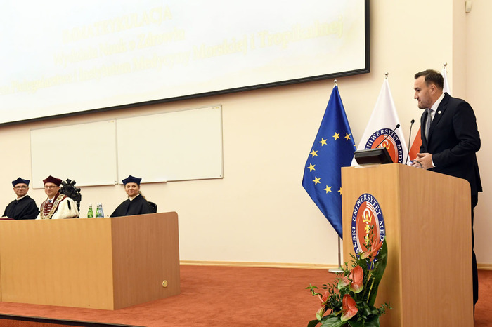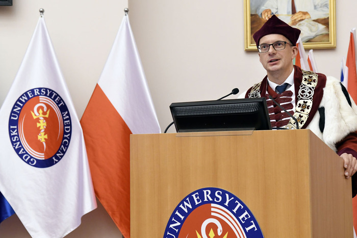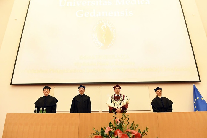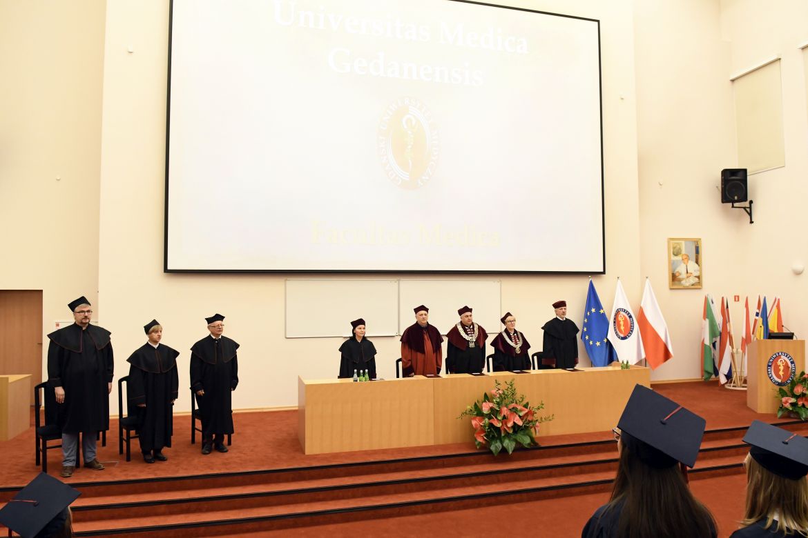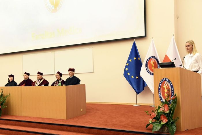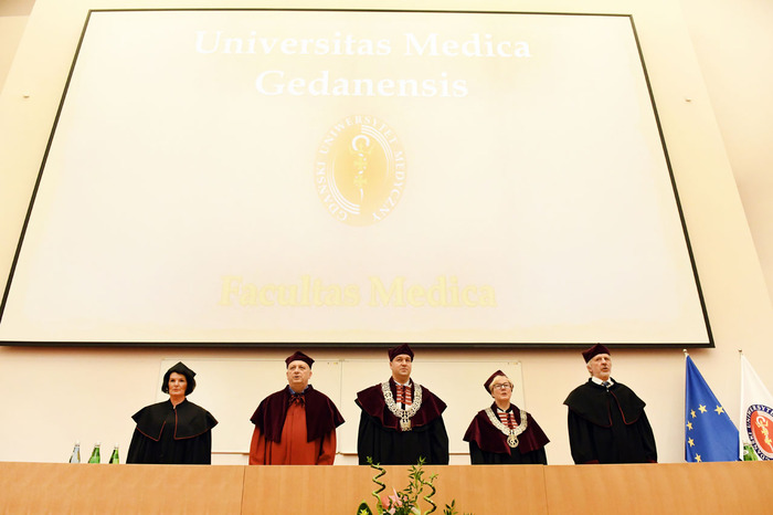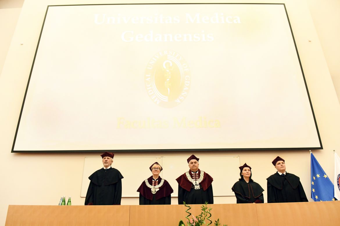 W uroczystości udział wzięli: rektor GUMed prof. Marcin Gruchała, prodziekan WNoZ ds. studenckich i spraw socjalnych dr hab. Przemysław Rutkowski, prof. nadzw., prodziekan WNoZ ds. jakości kształcenia i praktyk studenckich dr hab. Sylwia Małgorzewicz, prof. nadzw., prodziekan Wydziału Farmaceutycznego dr hab. Bartosz Wielgomas.