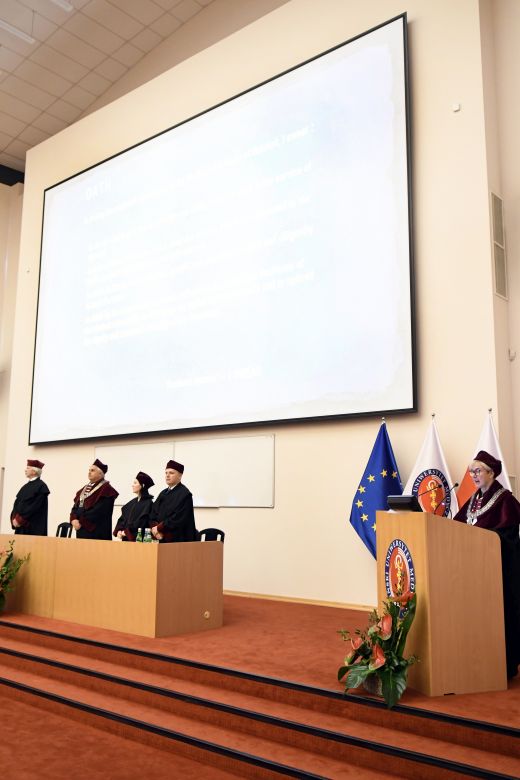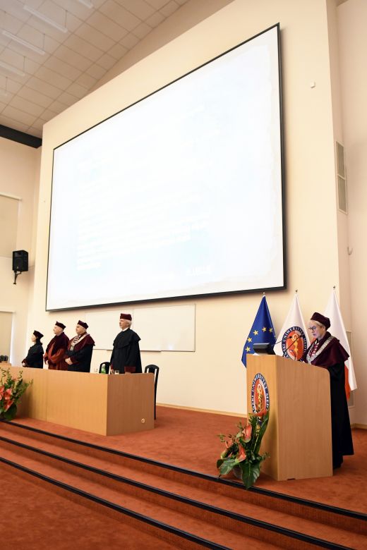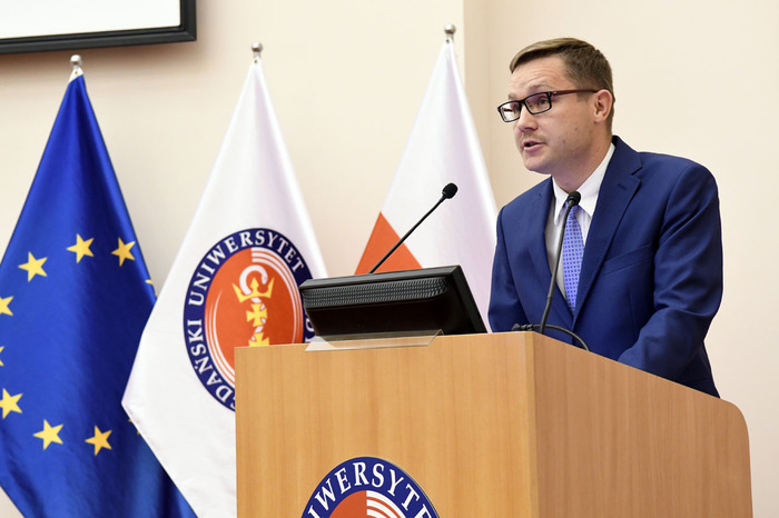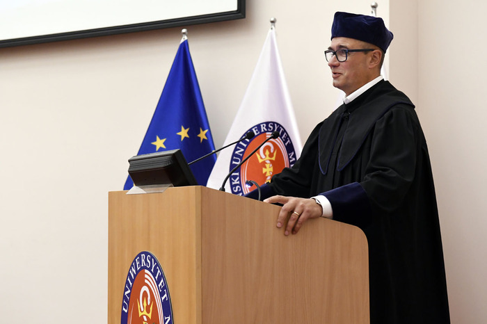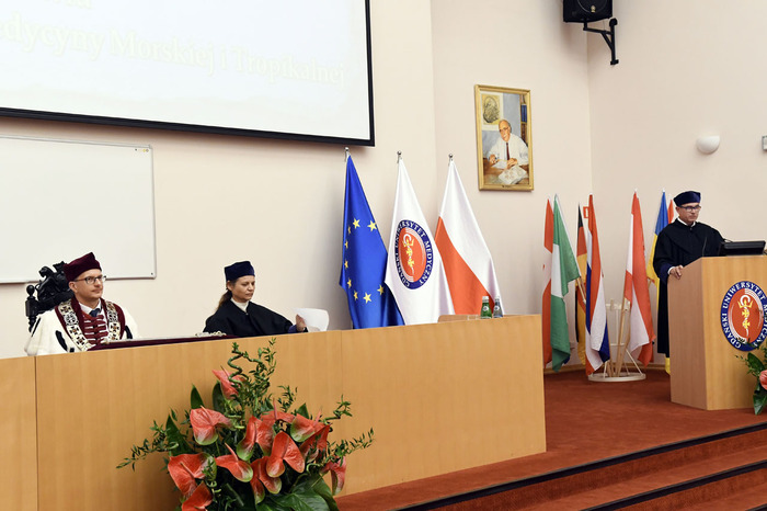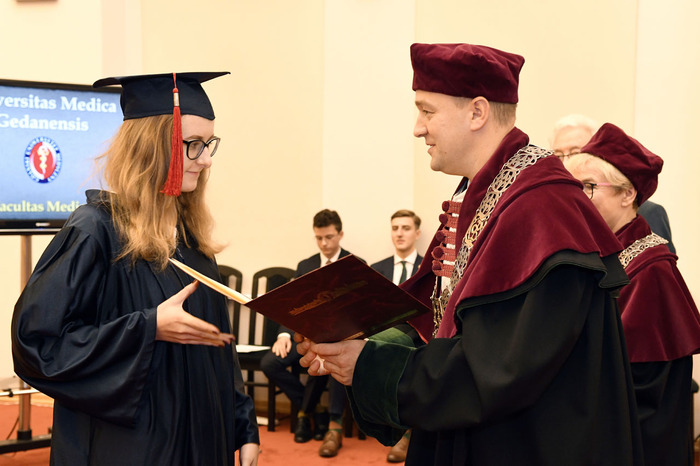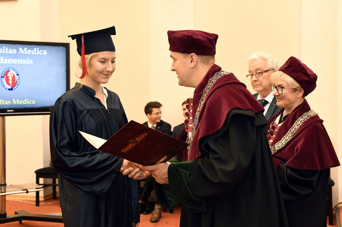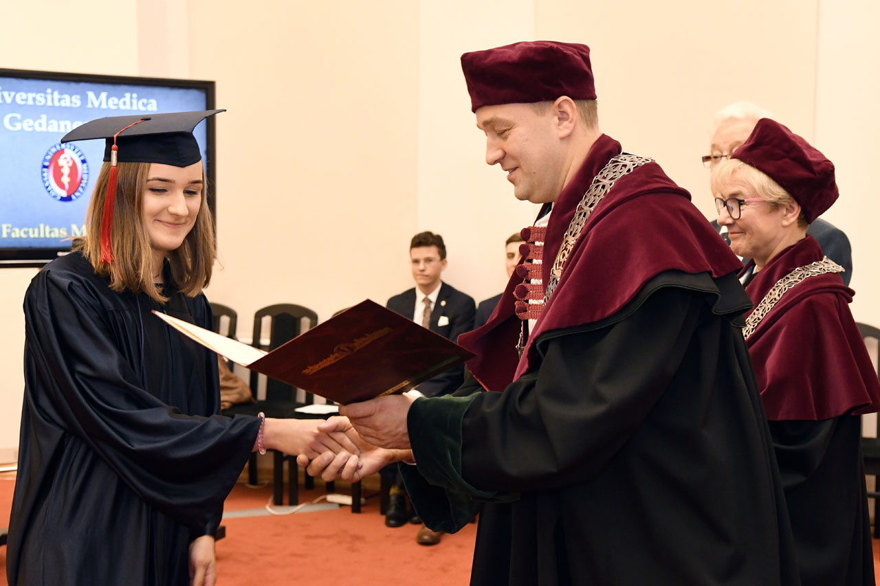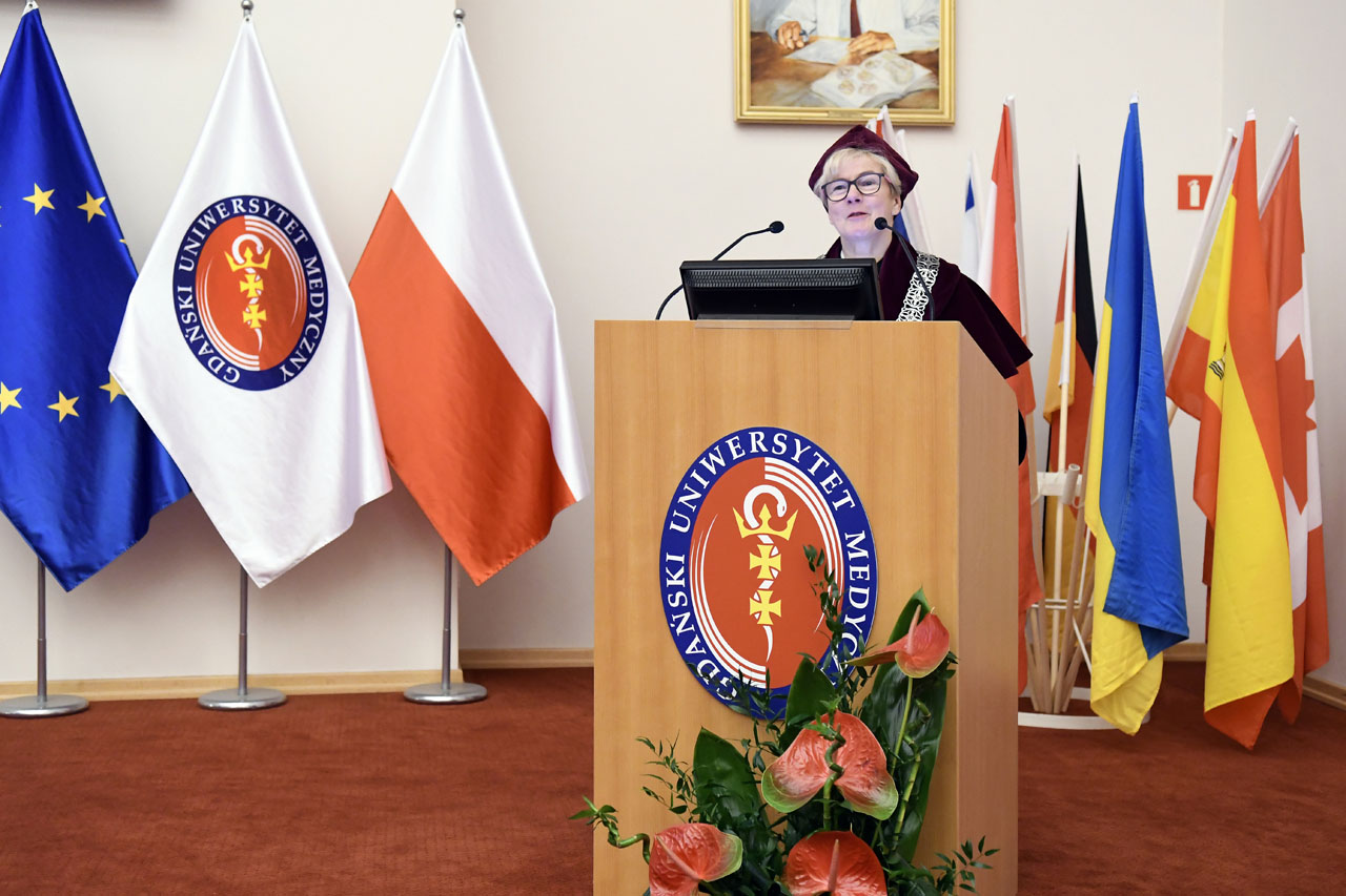 W uroczystości udział wzięli: rektor GUMed prof. Marcin Gruchała, prodziekan WNoZ ds. studenckich i spraw socjalnych dr hab. Przemysław Rutkowski, prof. nadzw., prodziekan WNoZ ds. jakości kształcenia i praktyk studenckich dr hab. Sylwia Małgorzewicz, prof. nadzw., prodziekan Wydziału Farmaceutycznego dr hab. Bartosz Wielgomas.