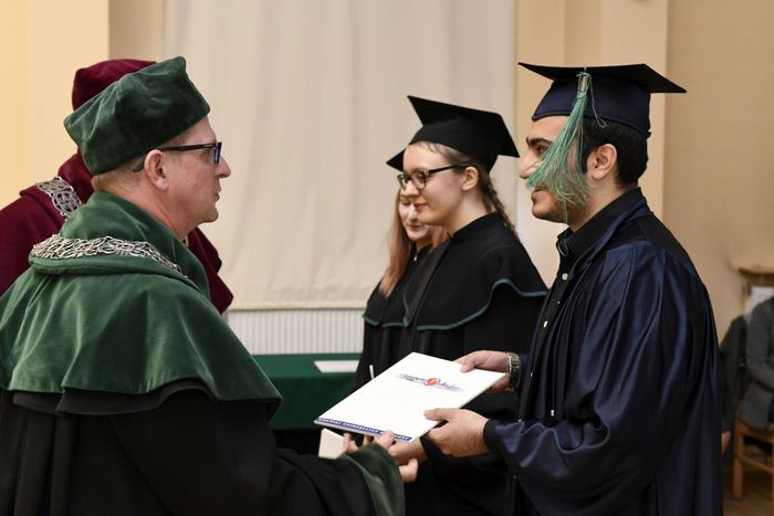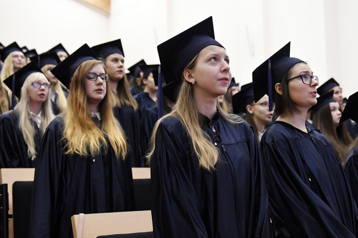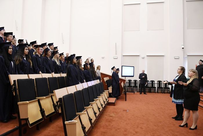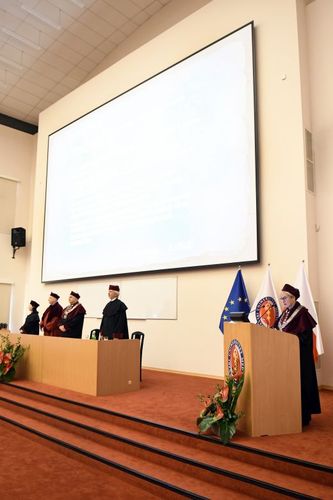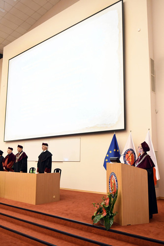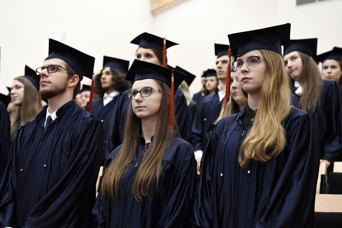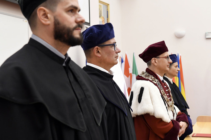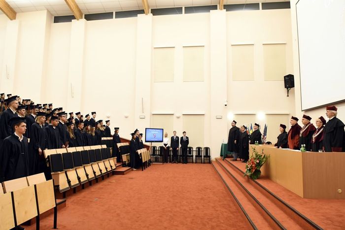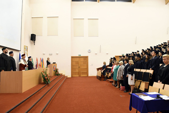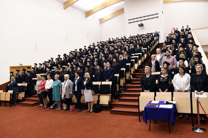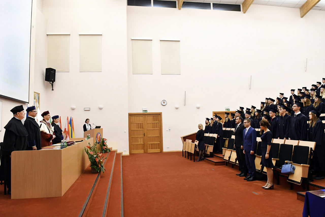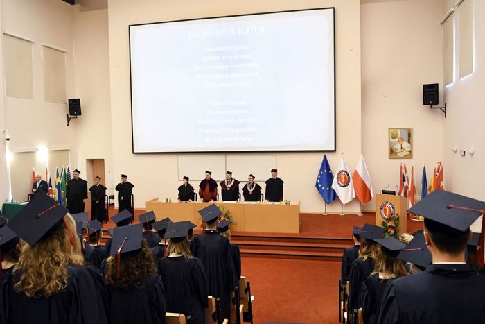 Uroczystość zakończyła się wspólnym odsłuchaniem hymnu studenckiego „Gaudeamus Igitur”.