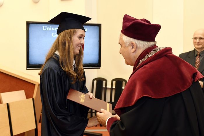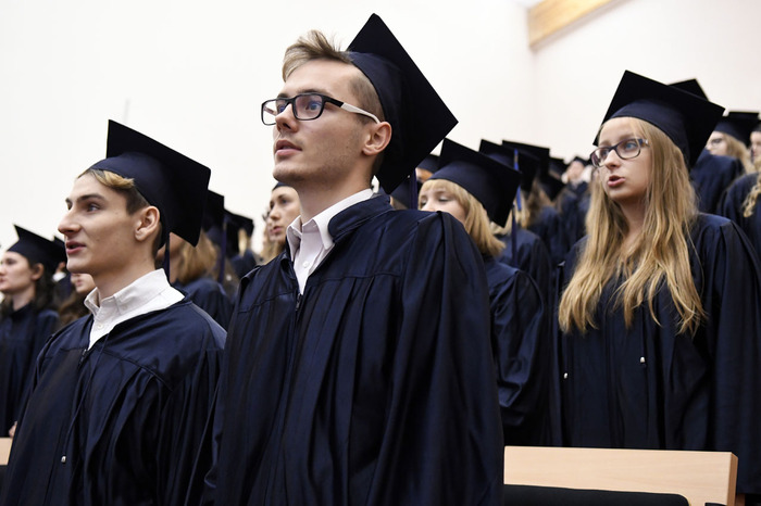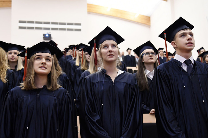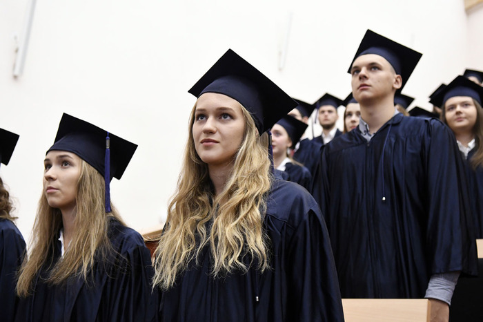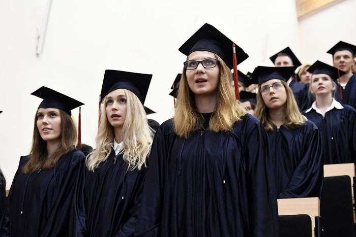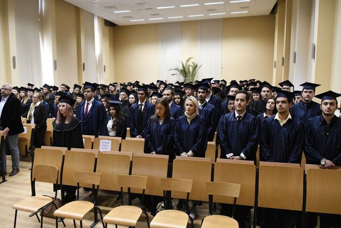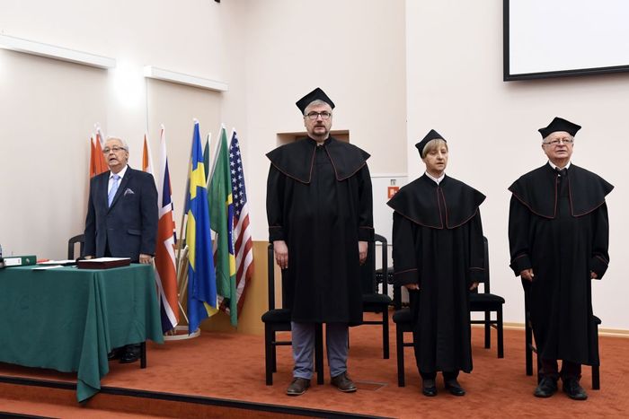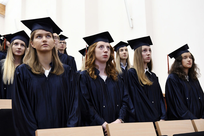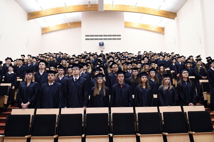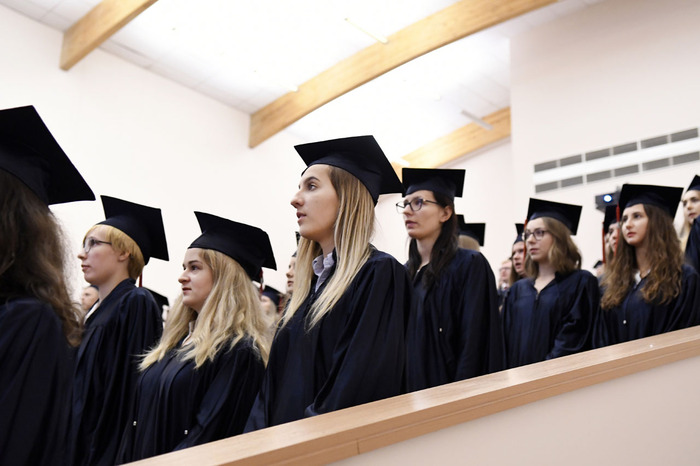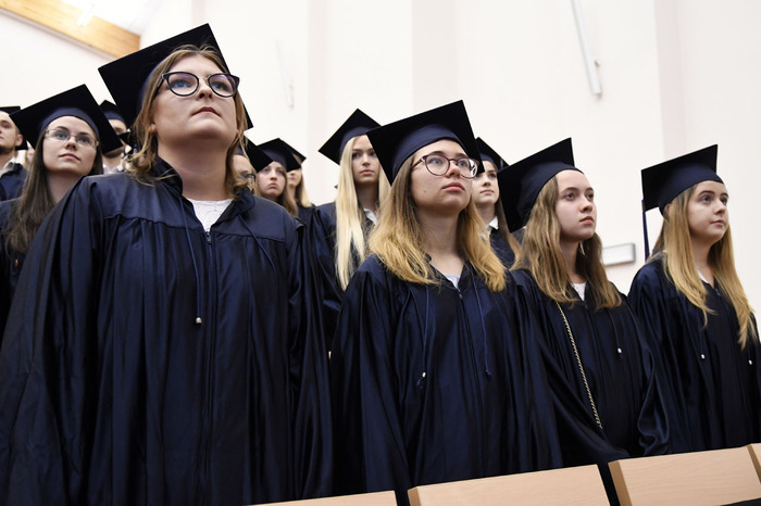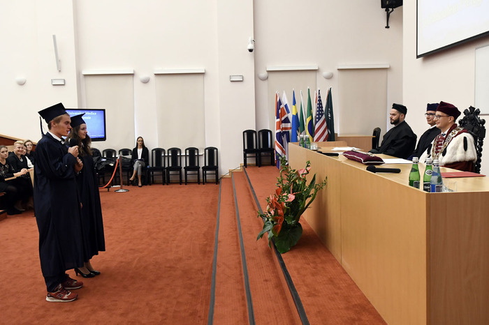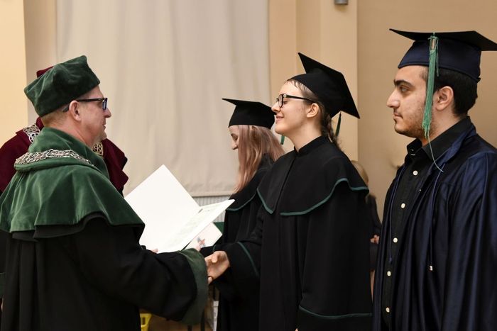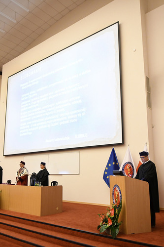 Uroczystość zakończyła się wspólnym odsłuchaniem hymnu studenckiego „Gaudeamus Igitur”.