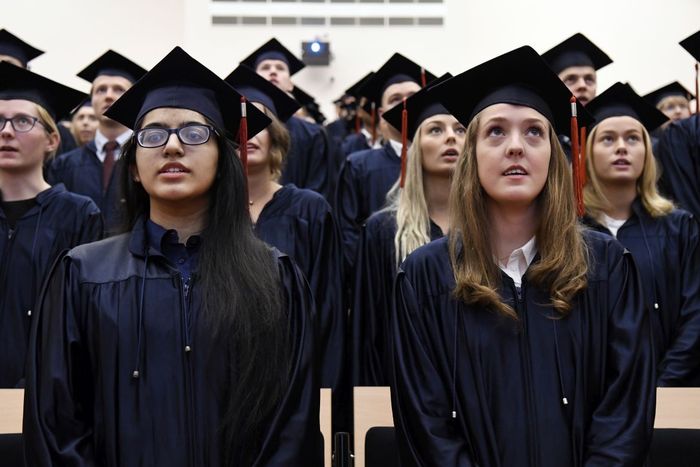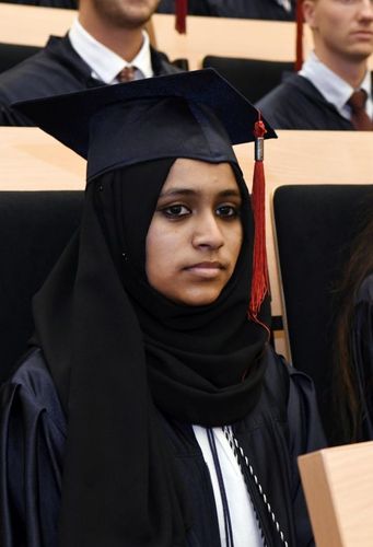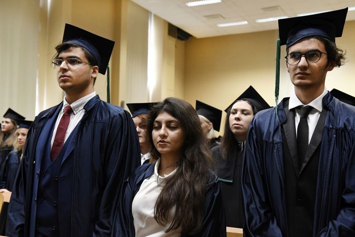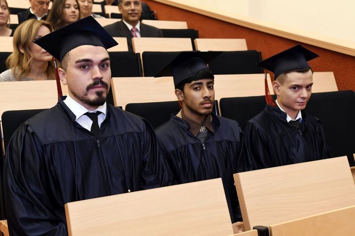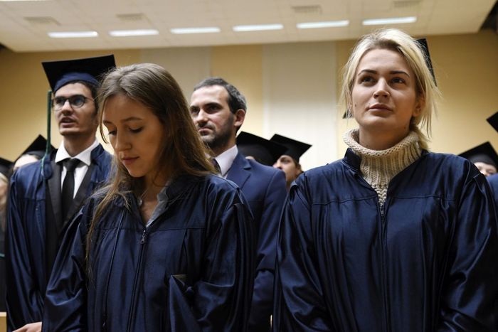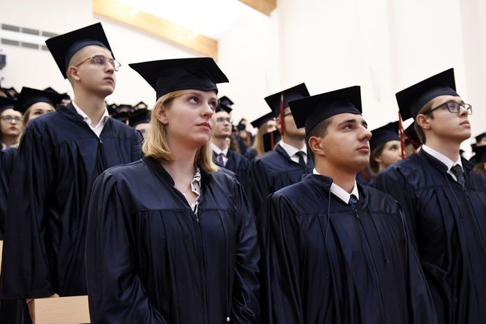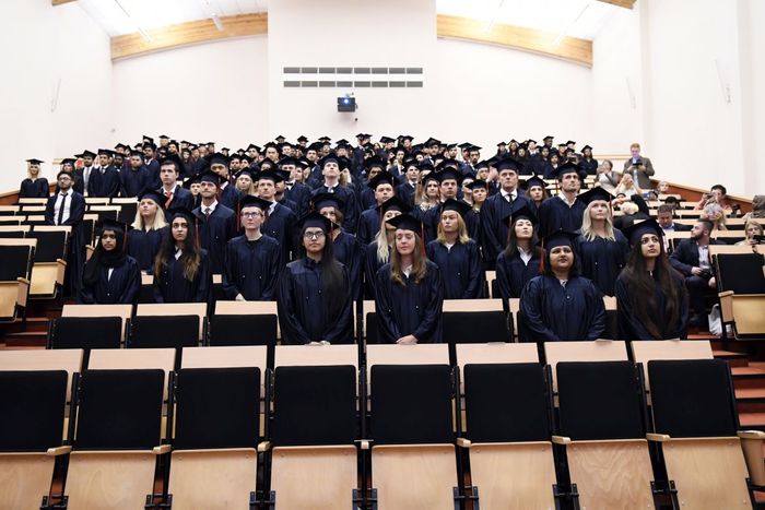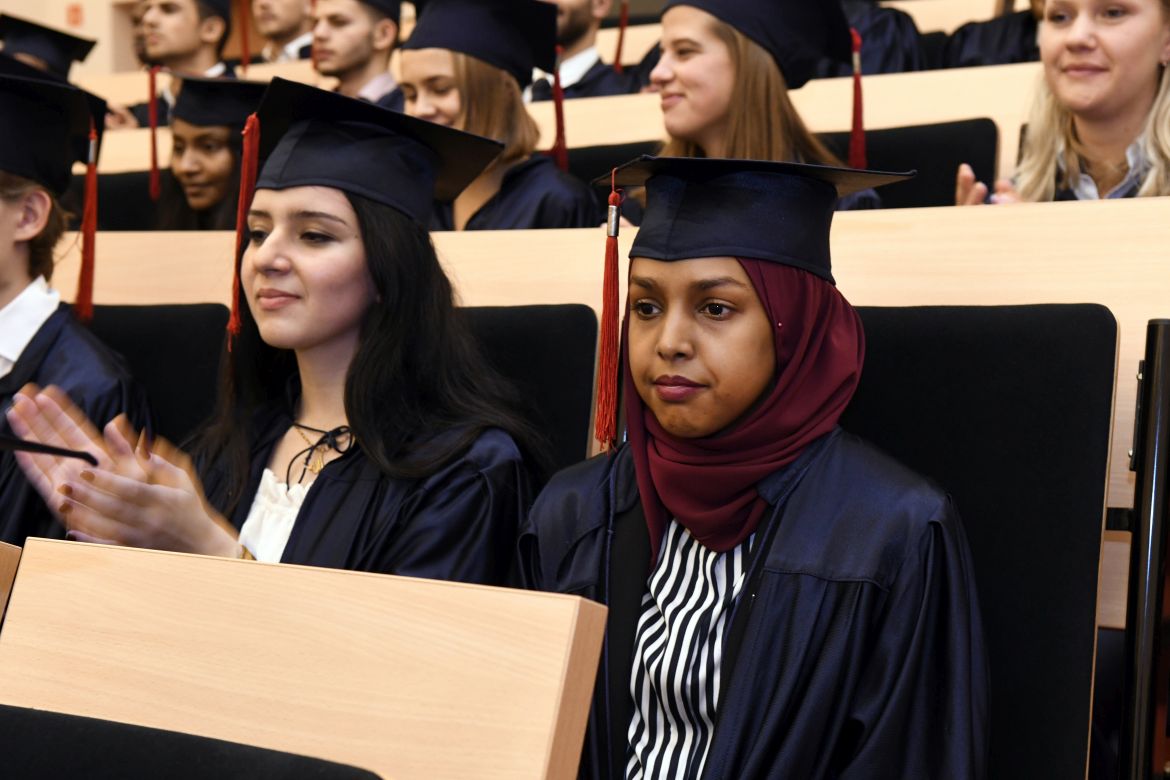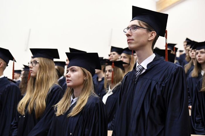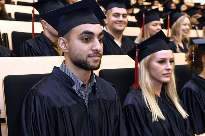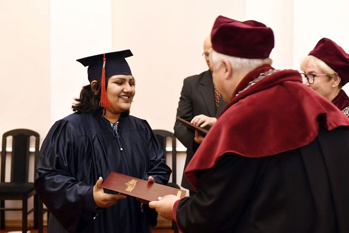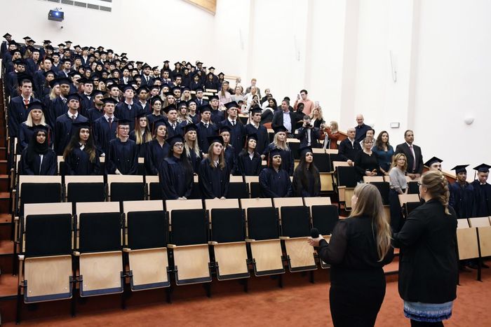 Uroczystość zakończyła się wspólnym odsłuchaniem hymnu studenckiego „Gaudeamus Igitur”.