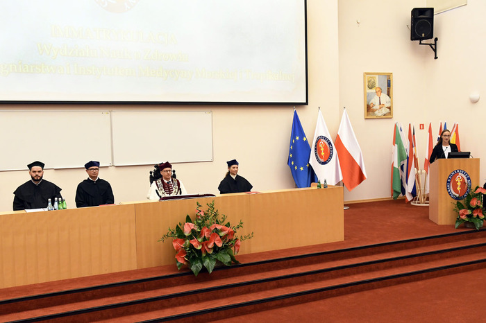 Uroczystości odbyły się w dwóch etapach. Immatrykulację prowadziły mgr Katarzyna Gross-Issajewicz – opiekun I roku studiów Nursing English Division oraz dr Agata Zdun-Ryżewska, kierownik kierunku psychologia zdrowia.