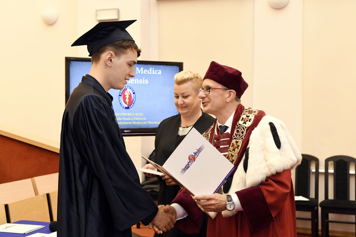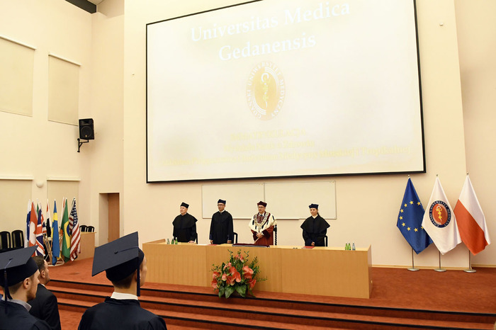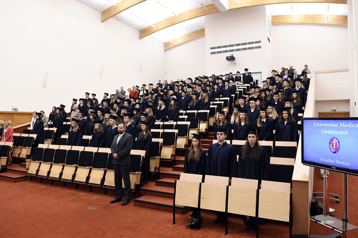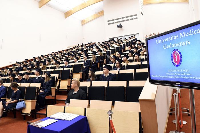 Dzień później immatrykulowani zostali studenci kierunku lekarskiego polskojęzycznego i anglojęzycznego tzw. English Division. Tym uroczystościom przewodniczył dr hab. Tomasz Smiatacz, prorektor ds. studenckich. Ceremonię ślubowania prowadziła prof. Maria Dudziak, dziekan Wydziału Lekarskiego, a przemówienia wygłosili m.in. prof. Tomasz Bączek, dr hab. Tomasz Smiatacz. Nowo przyjętych studentów powitał dr. Henryk Zawadzki, opiekun studentów I roku WL. W uroczystościach uczestniczyli również: prof. Janusz Moryś, rektor GUMed w latach 2008-2016, prodziekani Wydziału Lekarskiego oraz przedstawiciele Rady Wydziału, dr Narcyz Knap, opiekun studentów I roku English Division, przedstawiciele IFMSA oraz studentów II roku.
