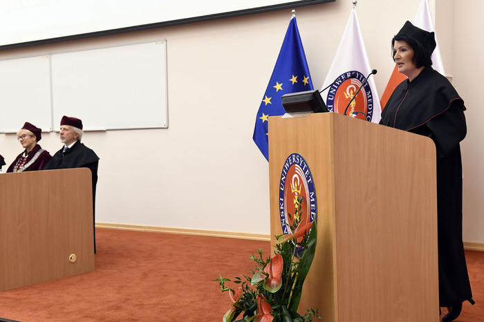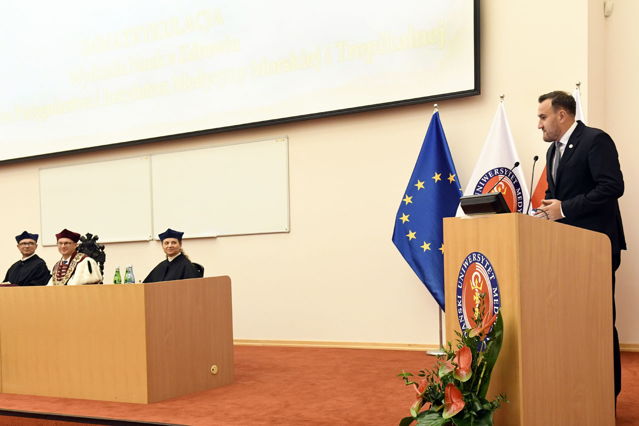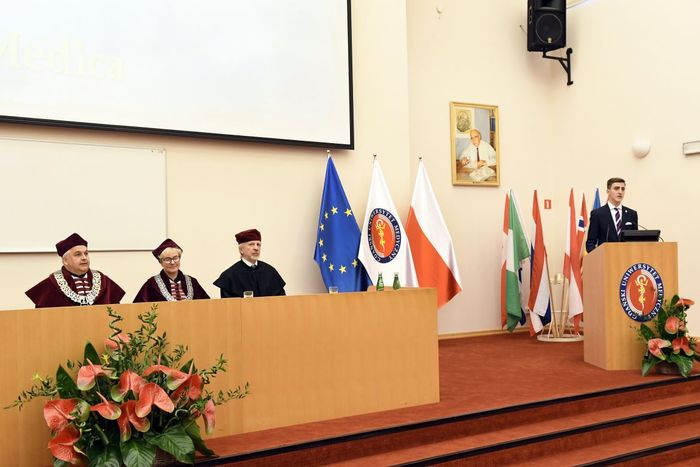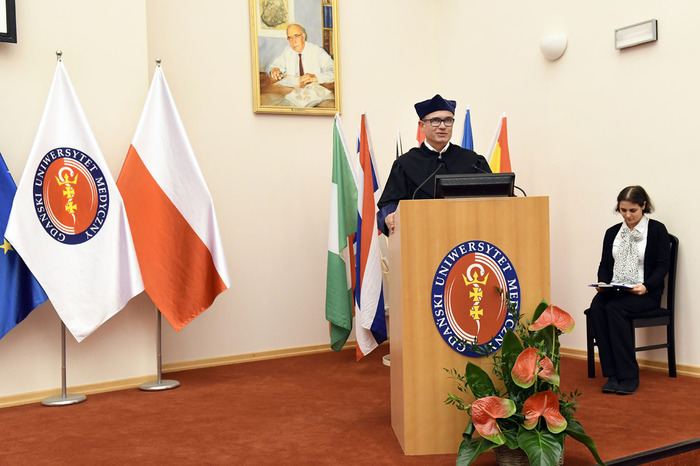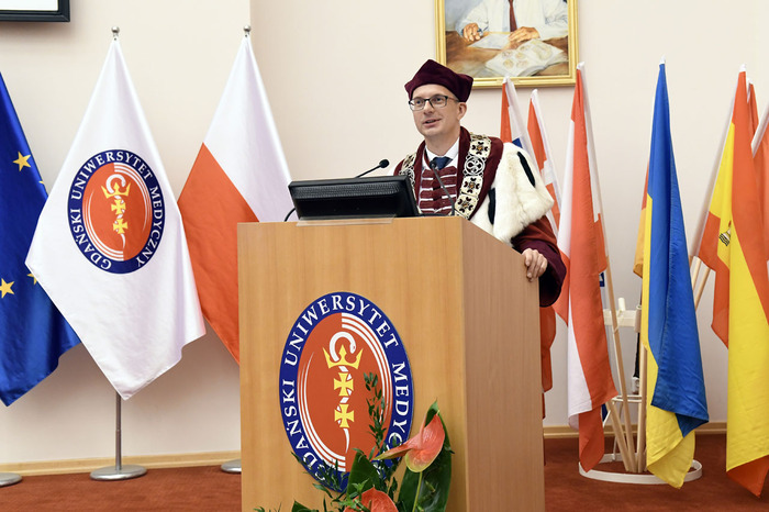 Prorektor prof. Tomasz Bączek nowo przyjętym studentom życzył motywacji i determinacji w zdobywaniu wiedzy na kolejnych latach studiów. Zachęcał, aby włączyli się w działalność naukową i samorządową, korzystając z oferty kół naukowych i organizacji studenckich. Zwrócił się również do studentów English Division, gratulując im otrzymania indeksu GUMed. Okolicznościowe przemówienie wygłosił także dziekan prof. Michał Markuszewski, witając studentów w społeczności akademickiej.