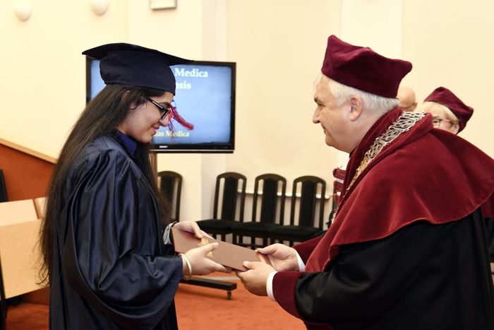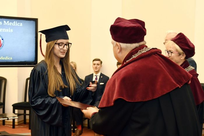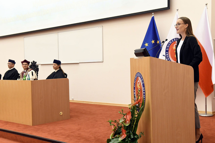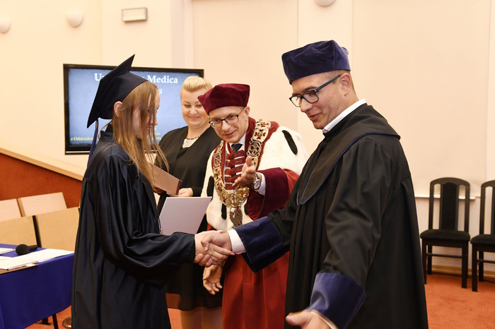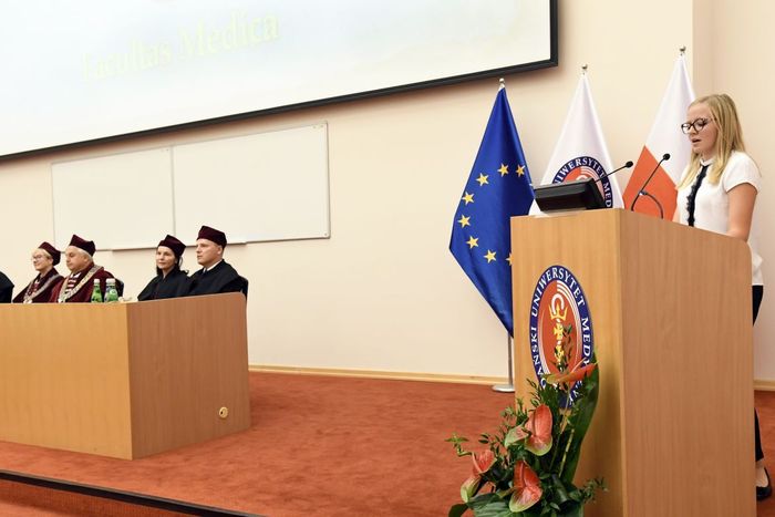 Po akcie ślubowania studenci, którzy uzyskali najwyższą punktację w procesie rekrutacji, otrzymali z rąk Prorektora i Dziekana listy gratulacyjne. Następnie Ewelina Gojtowska, studentka V roku analityki medycznej, z ramienia Uczelnianego Samorządu Studenckiego powitała pierwszoroczniaków w gronie kolegów.