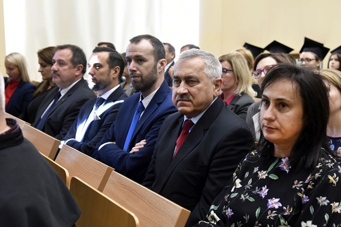 W uroczystościach uczestniczyli również zaproszeni goście – przedstawiciele przyszłych pracodawców: Marzena Olszewska-Fryc, dyrektor ds. pielęgniarstwa Szpitala im M. Kopernika w Gdańsku, Danuta Adamczyk-Wiśniewska, wiceprzewodnicząca Okręgowej Izby Pielęgniarek i Położnych w Gdańsku, Anna Lignowska, zastępca dyrektora naczelnego ds. pielęgniarstwa UCK, Radosław Rzepecki, zastępca Pomorskiego Wojewódzkiego Inspektoratu Ochrony Środowiska, dr Katarzyna Gierat-Haponiuk, koordynator Samodzielnego Zespołu Fizjoterapeutów UCK. Nie zabrakło też Tomasza Augustyniaka, Pomorskiego Państwowego Wojewódzkiego Inspektora Sanitarnego. W swoich wystąpieniach gratulowali wyboru GUMed jako uczelni, której dyplom gwarantuje wysokie umiejętności pracowników.