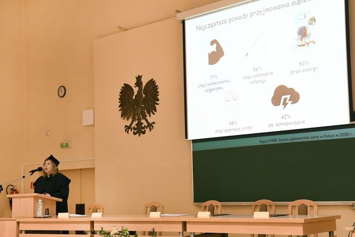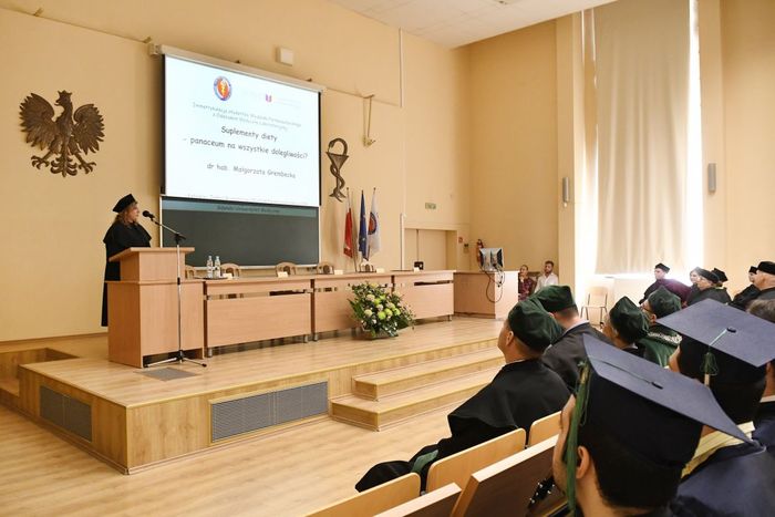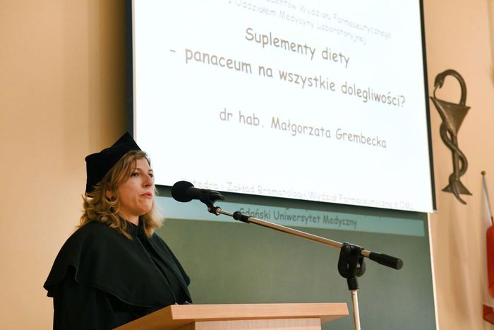 Wykład inauguracyjny pt. „Suplementy diety – panaceum na wszystkie dolegliwości?” wygłosiła dr hab. Małgorzata Grembecka z Katedry i Zakładu Bromatologii WF z OML.