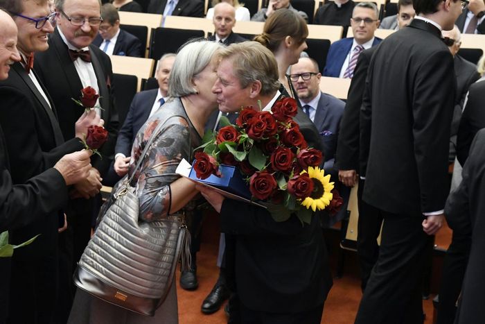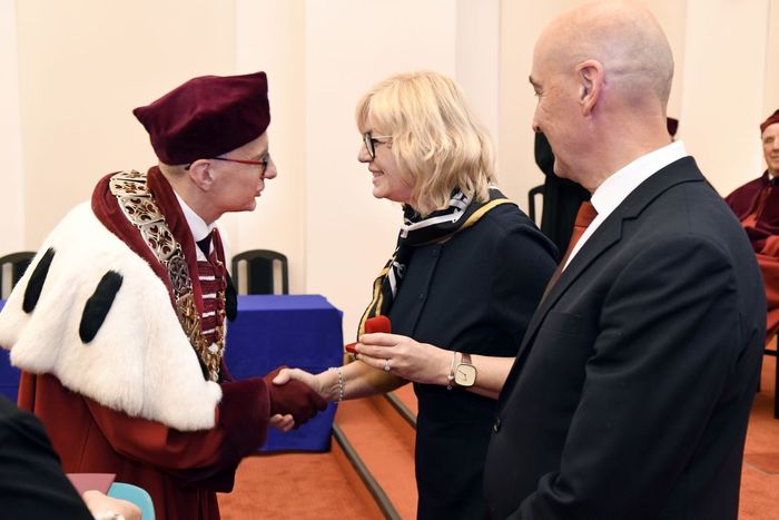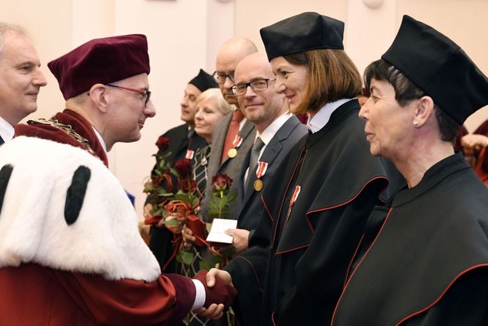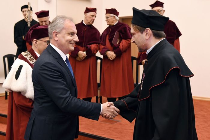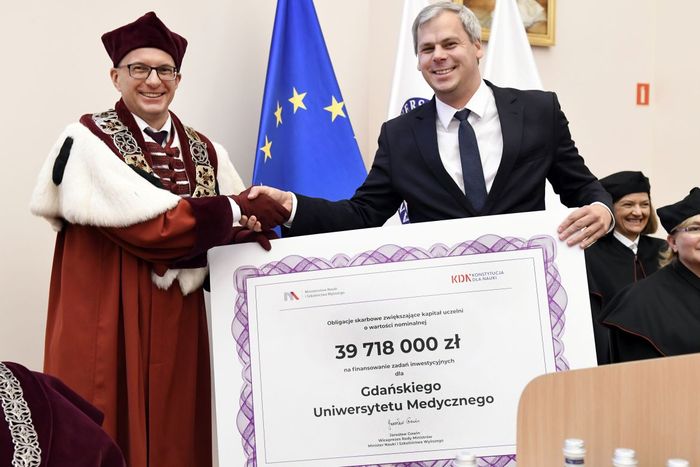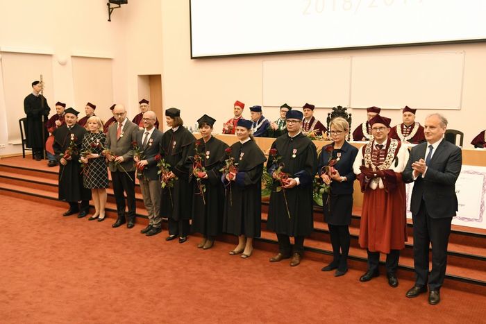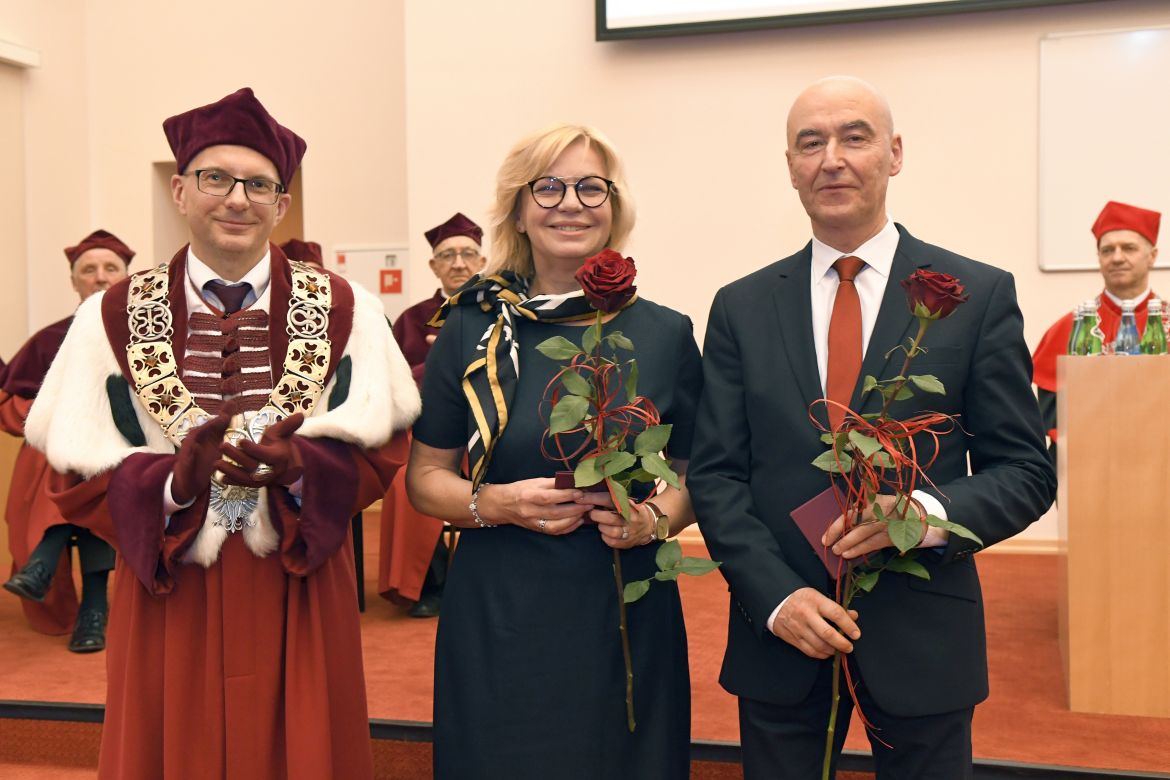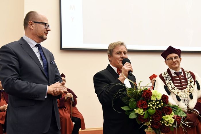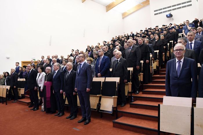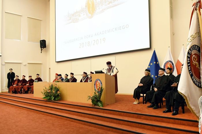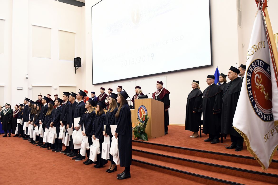 Rektor GUMed prof. Marcin Gruchała w swoim przemówieniu podkreślił, że przed Uczelnią rok pełen wyzwań związanych z wdrożeniem Konstytucji dla Nauki, która w sposób istotny zmienia dotychczasowe zasady organizacji i ustroju polskich uczelni. – Z całą stanowczością pragnę Państwa zapewnić, że dołożę wszelkich starań, aby projektowane zmiany, które w wielu aspektach istotnie odbiegają od dotychczasowych rozwiązań funkcjonujących w naszej Uczelni i mogą budzić niepokój środowiska, były wprowadzane w sposób transparentny, z zachowaniem tradycyjnej struktury wydziałowej GUMed i poszanowania kolegialnego trybu podejmowania decyzji – zapewniał rektor Gruchała.