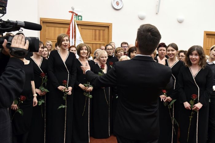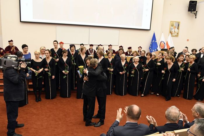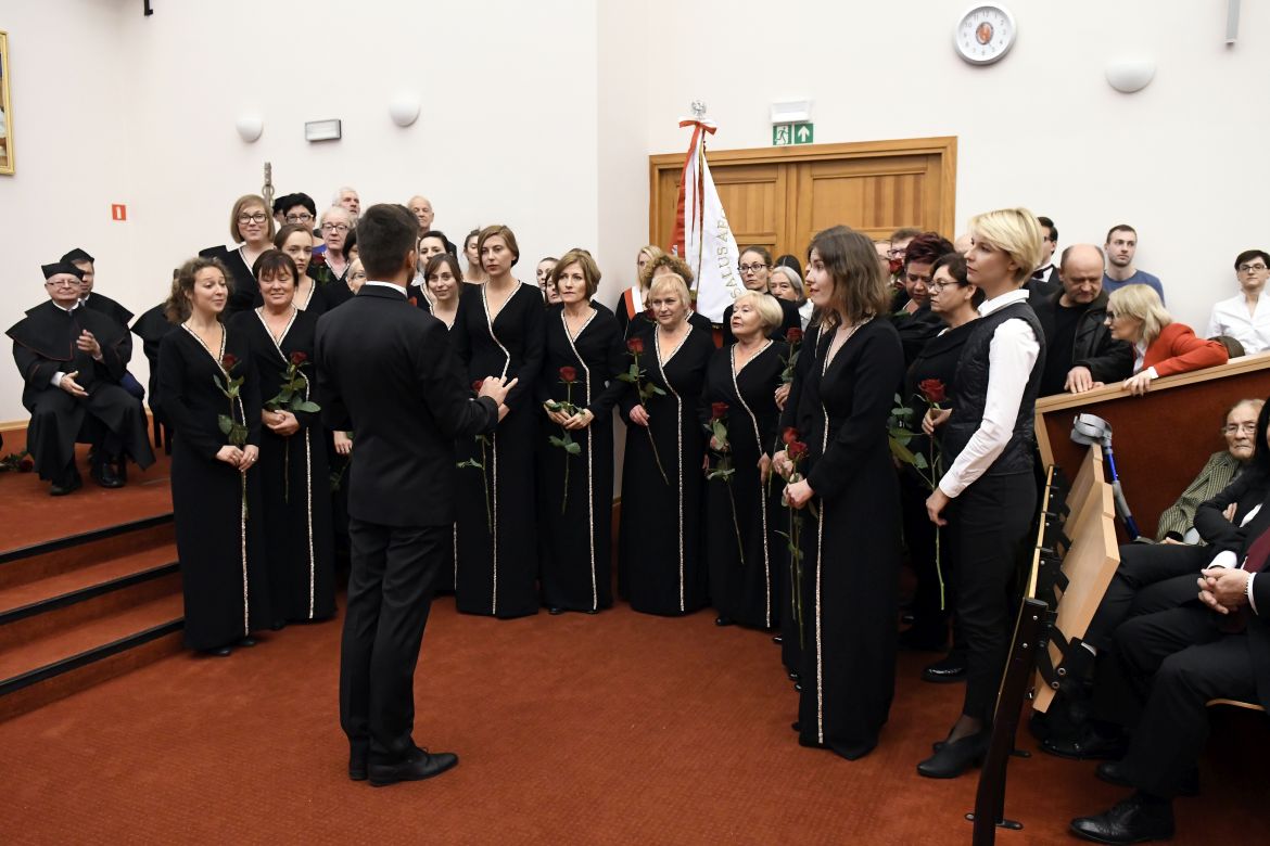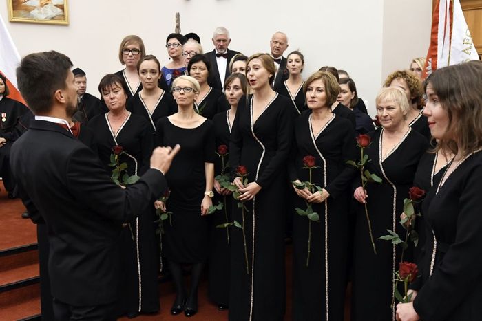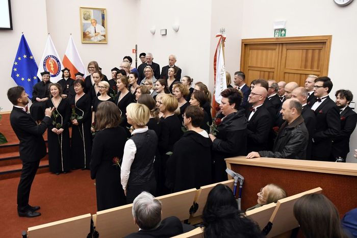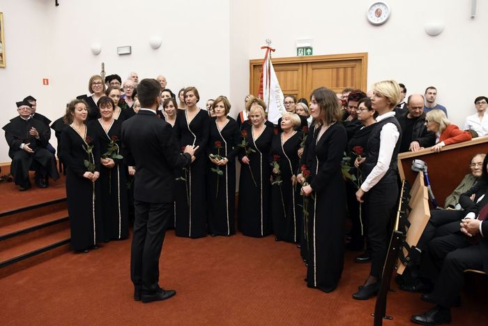 Podczas uroczystości prezydent Gdańska Paweł Adamowicz wręczył Jerzemu Szarafińskiemu, odchodzącemu dyrygentowi Chóru GUMed okolicznościowy medal związany z obchodami setnej rocznicy odzyskania przez Polskę niepodległości, a członkowie Chóru czerwone róże.