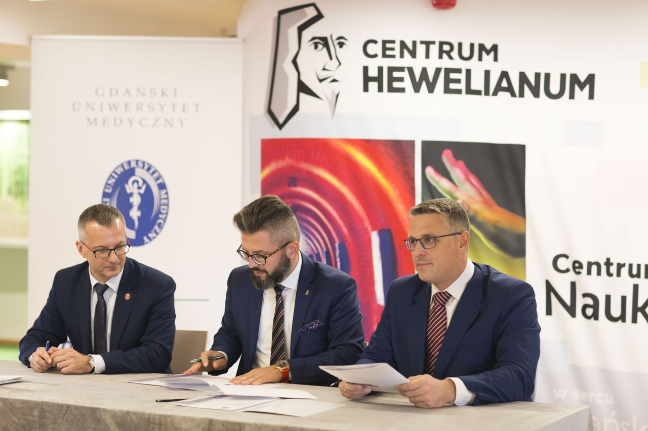 Wiedza Gdańskiego Uniwersytetu Medycznego i Uniwersyteckiego Centrum Klinicznego łączy siły z umiejętnością popularyzowania nauki, jakie ma Centrum Hewelianum. 10 października br. rektor GUMed prof. Marcin Gruchała, dyrektor naczelny UCK Jakub Kraszewski i dyrektor Centrum Hewelianum Paweł Golak podpisali porozumienie, które stanie się fundamentem wzajemnej współpracy na polu edukacji prozdrowotnej mieszkańców regionu pomorskiego.