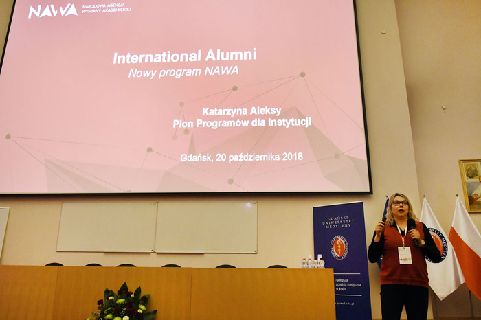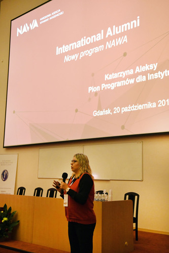 Uczestnicy spotkania, którzy zjechali się z całej Polski mogli również uzyskać informacje o nowym programie NAWA International Alumni, który zaprezentowała Katarzyna Aleksy, kierownik Pionu Programów dla Instytucji NAWA. Jego celem jest wsparcie uczelni i jednostek naukowych prowadzących kształcenie w rozwoju długofalowych relacji z zagranicznymi absolwentami, wykorzystaniu ich wiedzy i doświadczeń w procesach edukacyjnych oraz budowaniu we współpracy z nimi marki polskich instytucji za granicą. Ogłoszenie konkursu na dofinansowanie tych działań przez NAWA ma na celu wsparcie uczelni w systemowym i długofalowym budowaniu relacji z zagranicznymi absolwentami, aktywizacji uczelni i jej pracowników w zakresie współpracy z zagranicznymi absolwentami, tworzenia warunków sprzyjających wykorzystaniu doświadczeń i wiedzy zagranicznych absolwentów w procesie edukacji i rozwoju kariery zawodowej obecnych studentów oraz działań służących budowaniu marki polskich uczelni za granicą dzięki współpracy z zagranicznymi absolwentami.