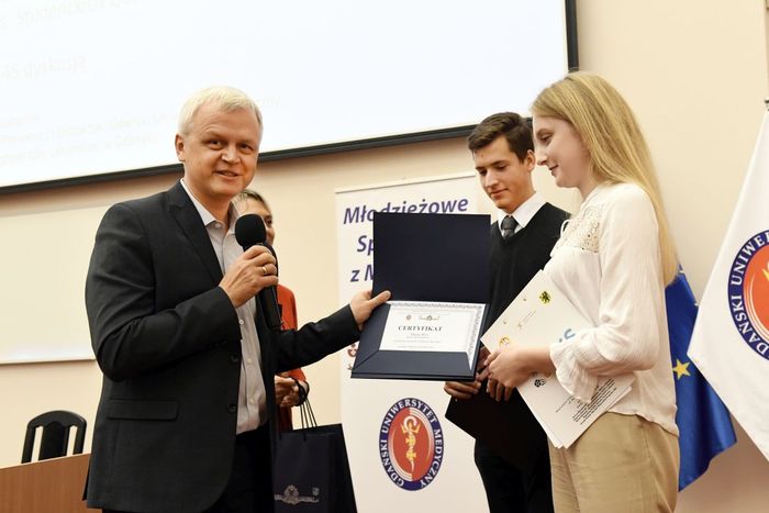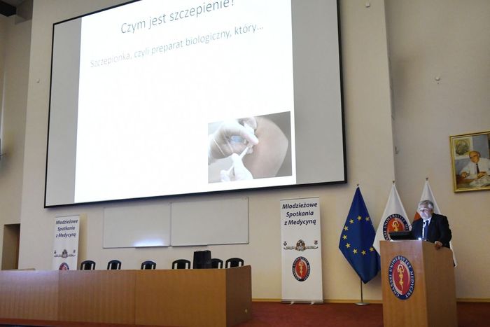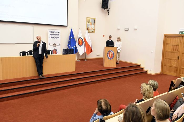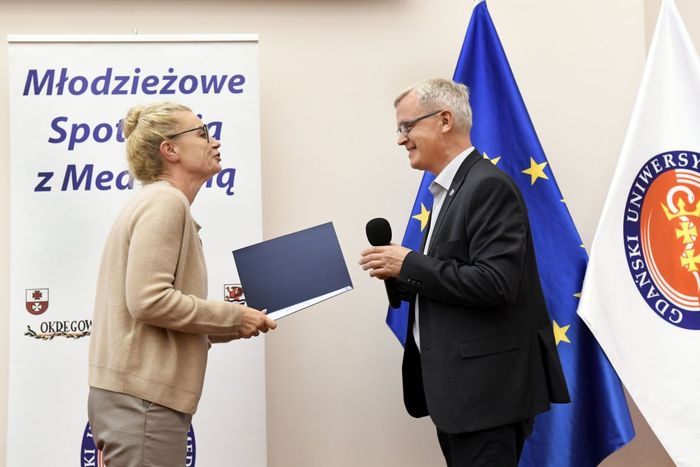 Młodzieżowe Spotkania z Medycyną to inicjatywa popularnonaukowa pracowników Zakładu Prewencji i Dydaktyki GUMed oraz Okręgowej Izby Lekarskiej w Gdańsku. Celem projektu jest pokazanie młodym kandydatom do zawodu lekarskiego medycyny oderwanej od medialnych stereotypów. Kolejna edycja przedsięwzięcia odbyła się 23 października br. w Atheneum Gedanense Novum. Spotkanie otworzyli Marta Ryś i Kajetan Lubacki, uczniowie z IX LO w Gdańsku, którzy przygotowali wykład pt. „Październik miesiącem profilaktyki raka piersi”. Dr hab. Anna Korzon-Burakowska z Zakładu Prewencji i Dydaktyki GUMed, przedstawiła temat „Cukrzyca – killer XXI wieku?”, a dr hab. Tomasz Smiatacz, kierownik Kliniki Chorób Zakaźnych GUMed oraz prorektor ds. studenckich wygłosił prelekcję pt. „Czy warto się zaszczepić?”.
