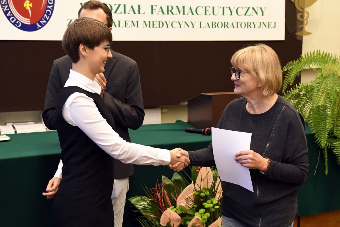 Mgr Kornelia Sałaga-Zaleska wygrała konkurs prac magisterskich Oddziału Medycyny Laboratoryjnej, który odbył się 6 listopada br. Została doceniona za pracę pt. „Ocena wybranych parametrów równowagi oksydacyjno-redukcyjnej u dzieci z zespołem Downa”, która powstała w Zakładzie Chemii Klinicznej pod kierunkiem dr. hab. Macieja Jankowskiego, prof. nadzw. i dr Agnieszki Kuchty. Drugie miejsce zajęła mgr Paulina Natalia Świniarska za pracę pt. „Ilościowa ocena ekspresji genu SHH na poziomie mRNA i białka w raku jasnokomórkowym nerki”. Promotorem pracy wykonanej w Katedrze i Zakładzie Histologii był dr hab. inż. Piotr M. Wierzbicki. Trzecie miejsce przypadło mgr Justynie Sakowskiej, która pod opieką prof. Piotra Trzonkowskiego i dr. Macieja Zielińskiego z Zakładu Immunologii Klinicznej i Transplantologii wykonała pracę pt. „Rekonstytucja limfocytów B krwi obwodowej po leczeniu rituximabem u dzieci z cukrzycą typu 1”. Laureatką Nagrody Publiczności ufundowanej przez Studenckie Towarzystwo Diagnostów Laboratoryjnych GUMed została mgr Kornelia Sałaga-Zaleska.