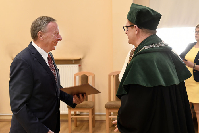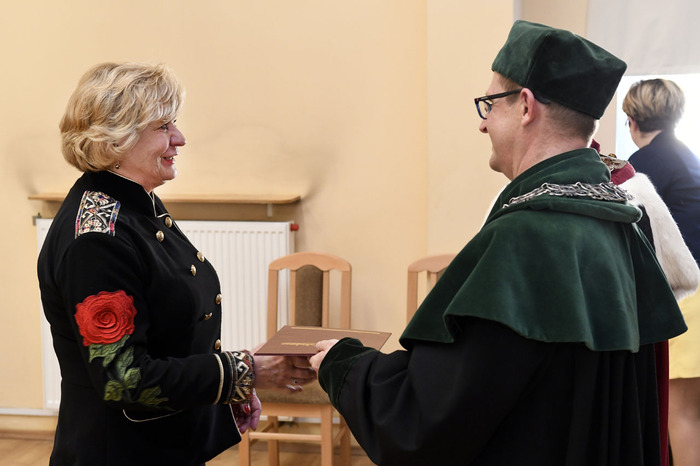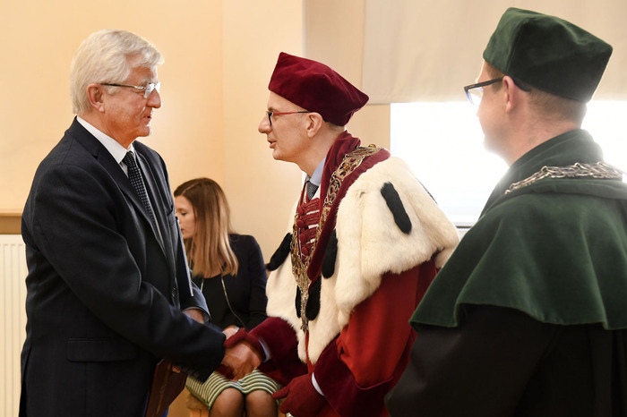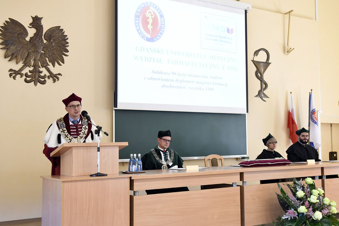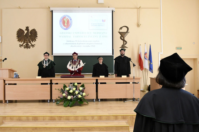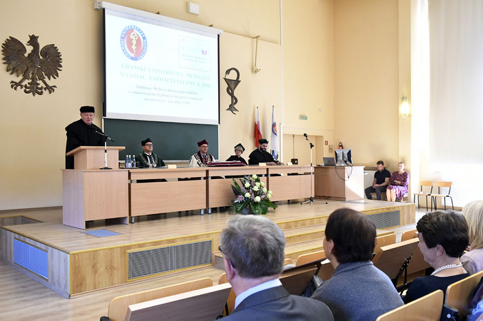 W uroczystości udział wzięli: rektor Gdańskiego Uniwersytetu Medycznego prof. Marcin Gruchała, dziekan Wydziału Farmaceutycznego z OML prof. Michał Markuszewski, prodziekani – dr hab. Bartosz Wielgomas i dr hab. Anita Kornicka, członkowie Rady Wydziału, a także zaproszeni goście.