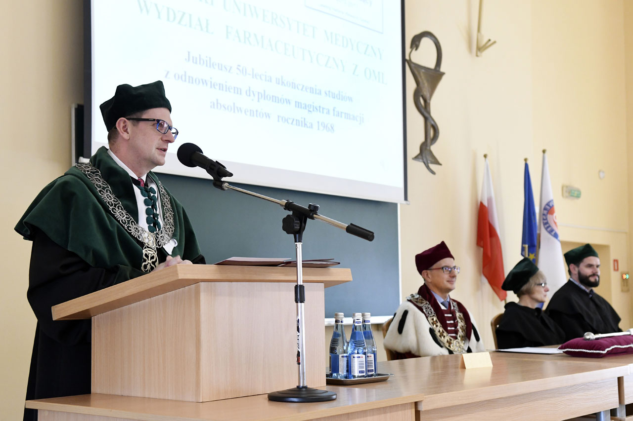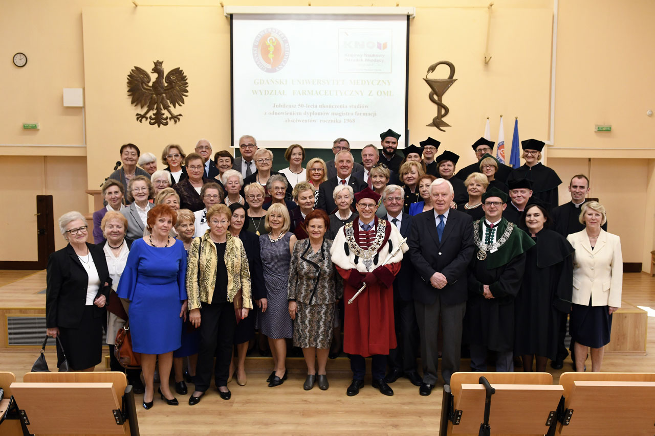 Farmaceuci rocznika 1968 obchodzili w tym roku jubileusz 50-lecia ukończenia studiów połączony z odnowieniem dyplomów. Uroczystość odbyła się 12 października br. w Auditorium Maximum Wydziału Farmaceutycznego z Oddziałem Medycyny Laboratoryjnej.
