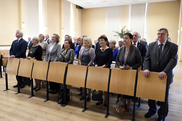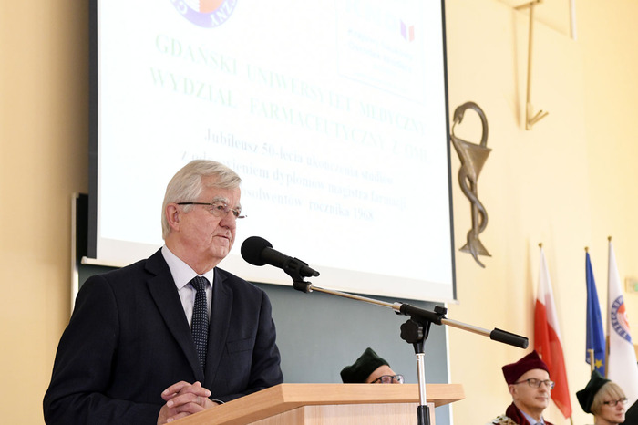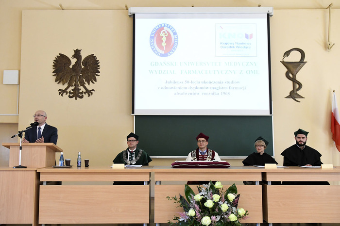 Przemówienia wygłosili Rektor GUMed oraz Dziekan WF. W gronie Jubilatów, którzy swoje życie zawodowe związali z Uczelnią i pełnili zaszczytne funkcje akademickie oraz w pracy na rzecz środowiska, znaleźli się: