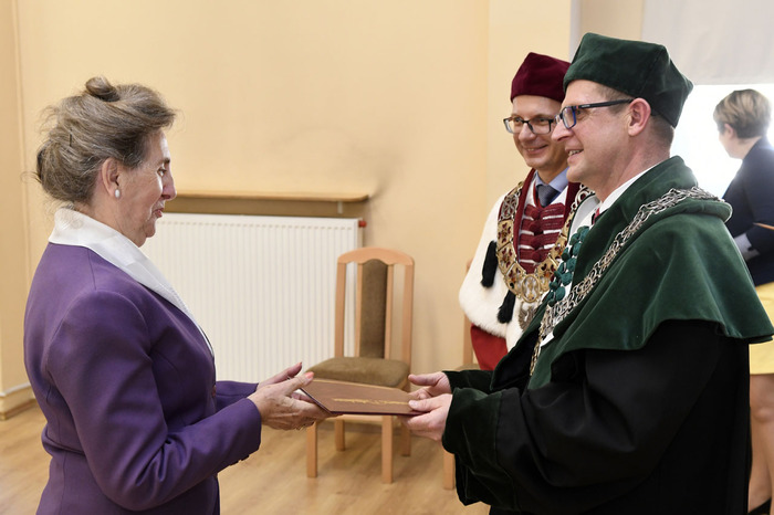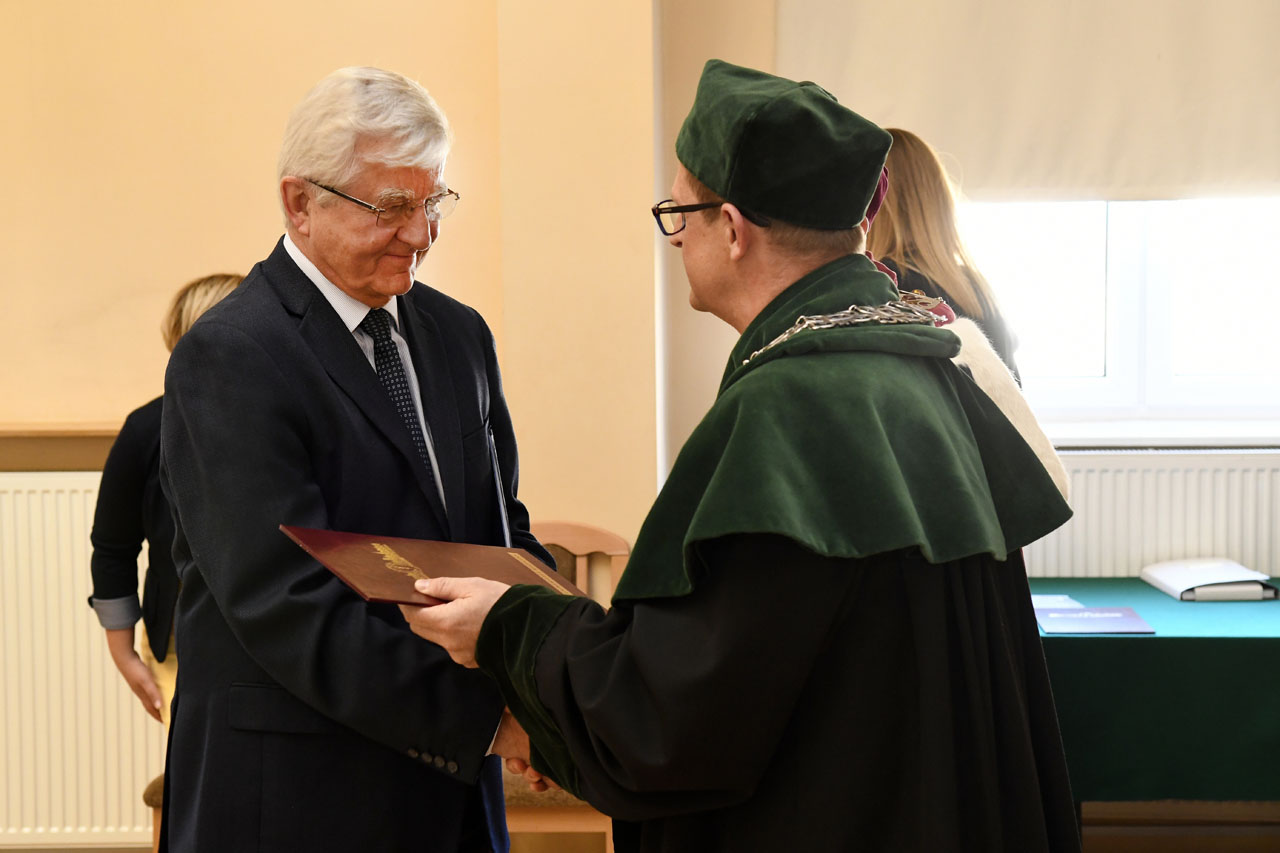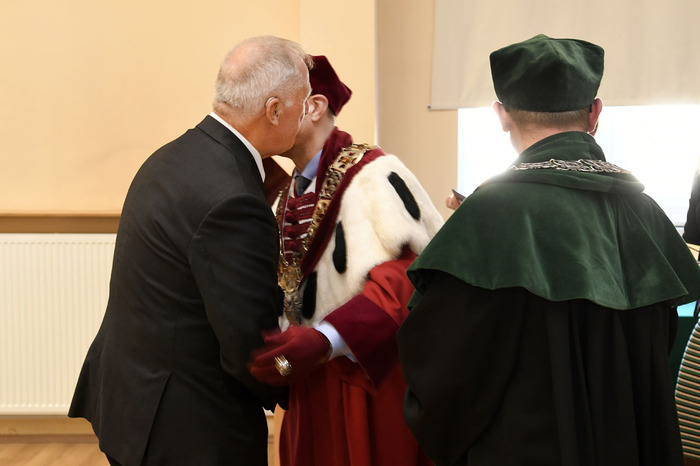 Uroczystość zakończyła się wysłuchaniem Gaudeamus Igitur oraz wspólnym zdjęciem władz Uczelni i Jubilatów.