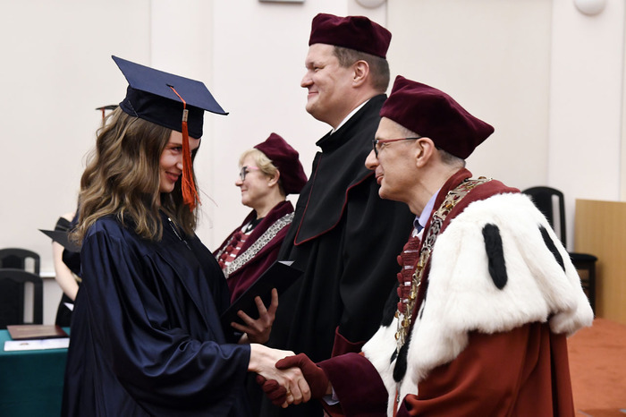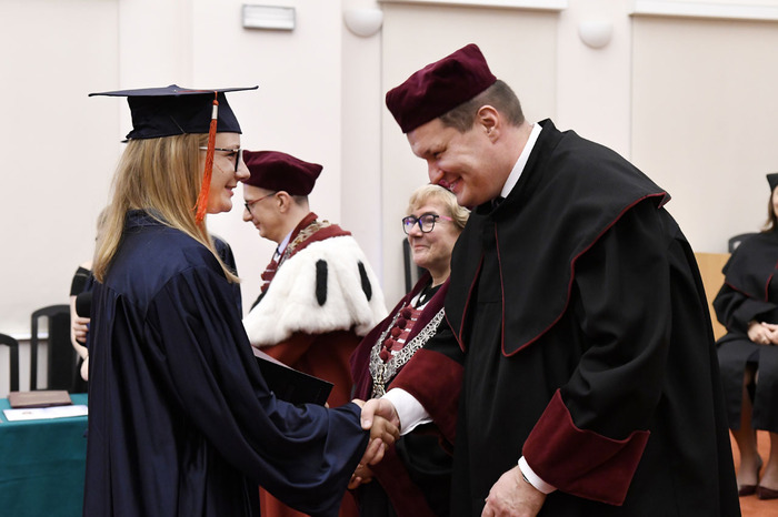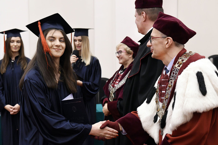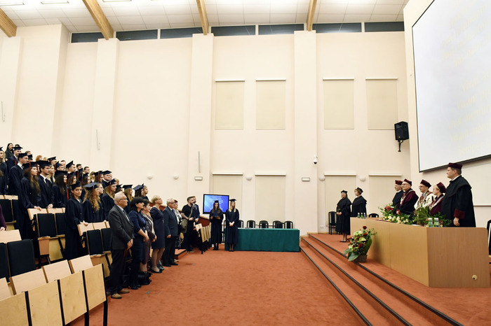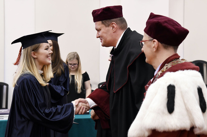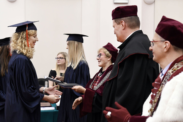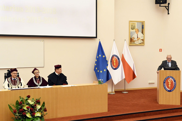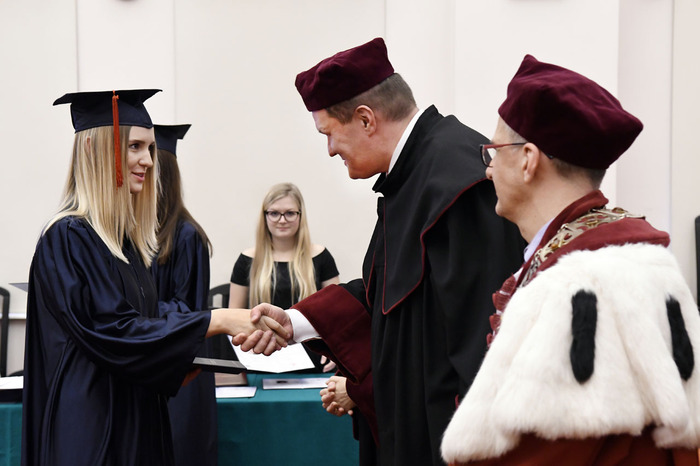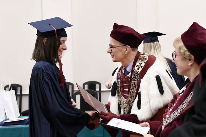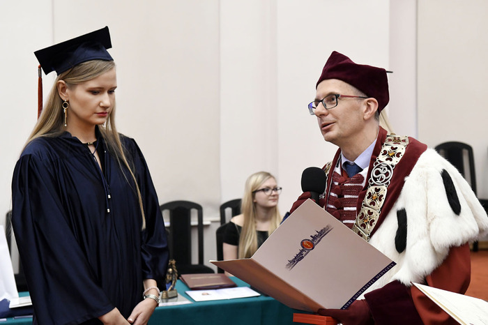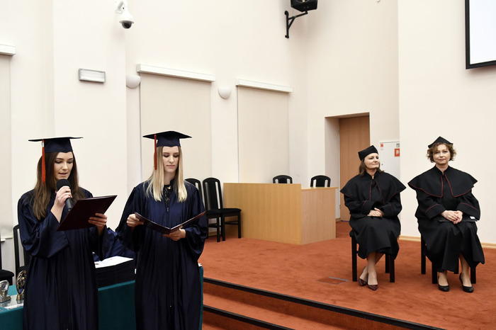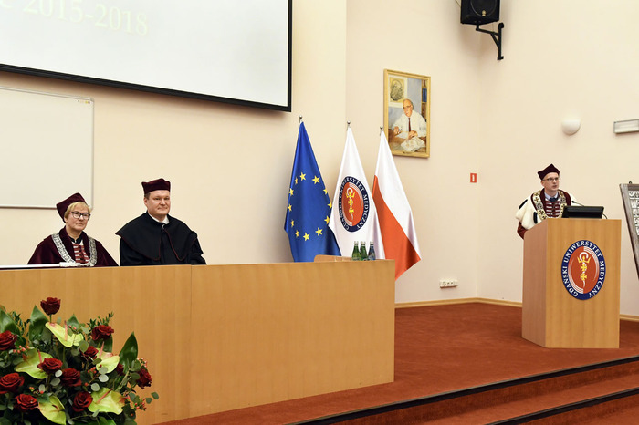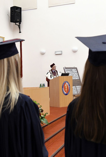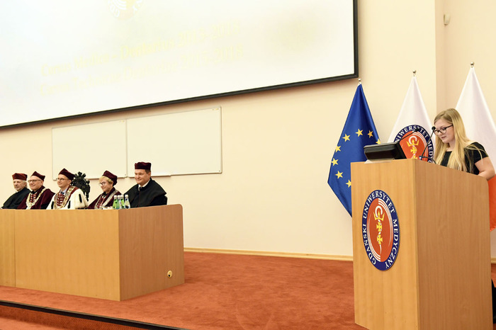 Po przemówieniach Rektora i Dziekana absolwenci złożyli przyrzeczenie i odebrali dyplomy. Głos zabrali: przedstawicielka V roku kierunku lekarsko-dentystycznego Roma Krosnowska oraz absolwenci kierunku lekarsko-dentystycznego Marlena Jesionowska i Aleksandra Falana. Wyróżniającym się absolwentom wręczono listy gratulacyjne i nagrody. Medal Primus Inter Pares otrzymała absolwentka kierunku lekarsko-dentystycznego – lek. dent. Paulina Gudalewska.