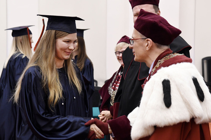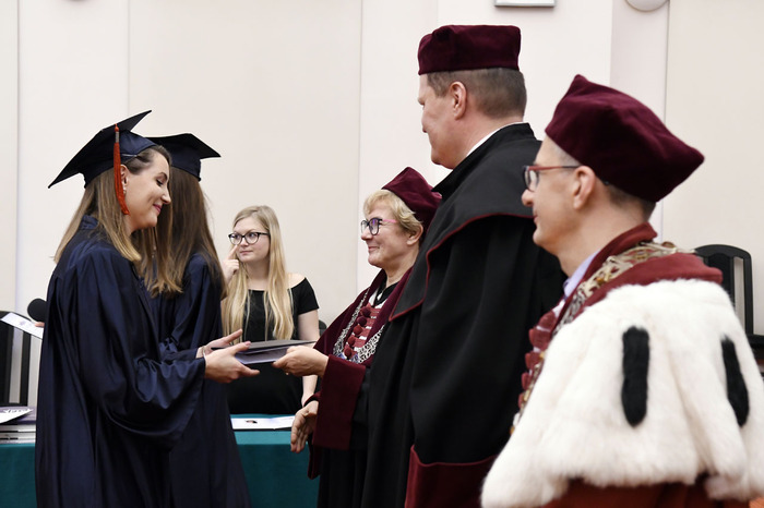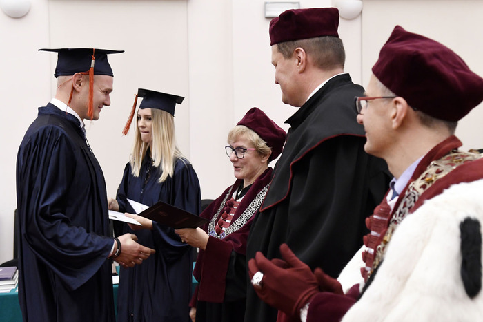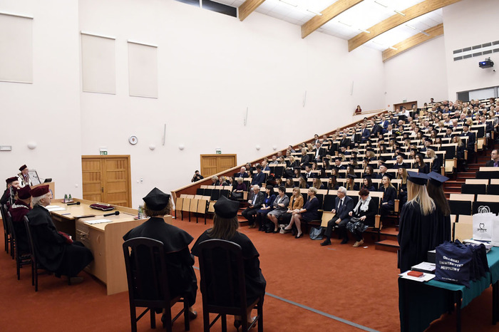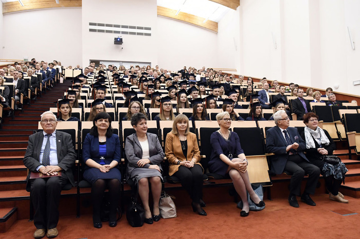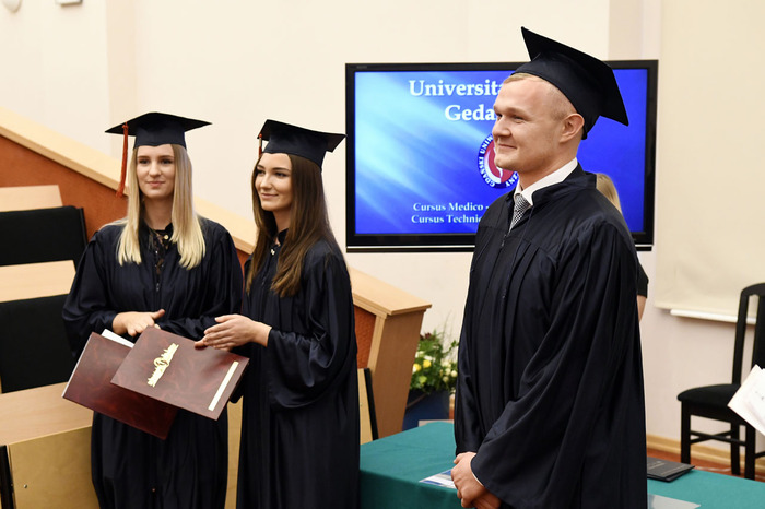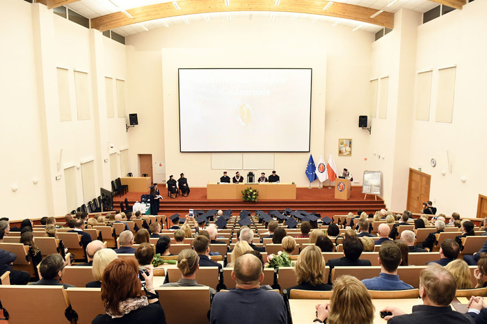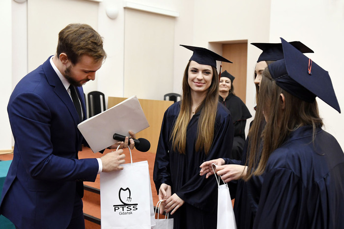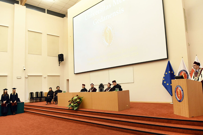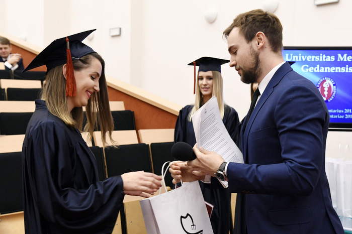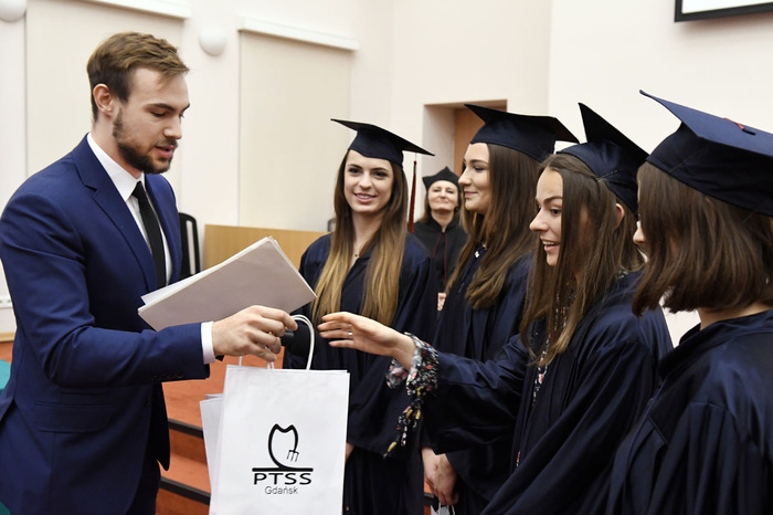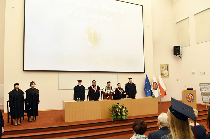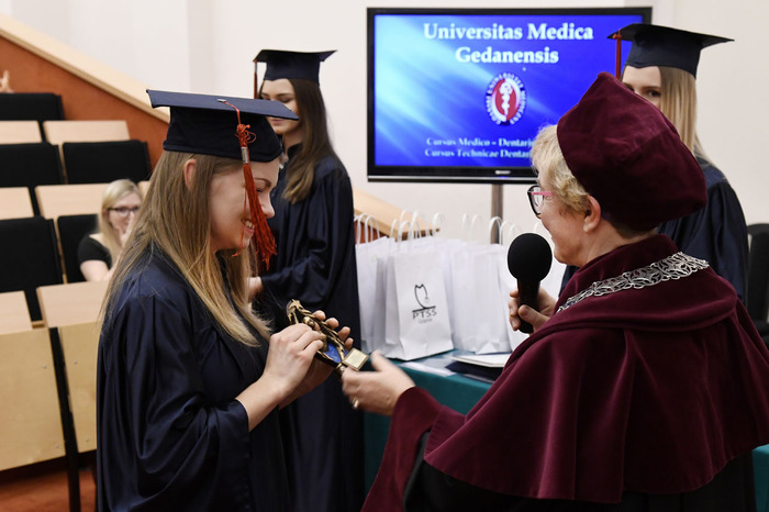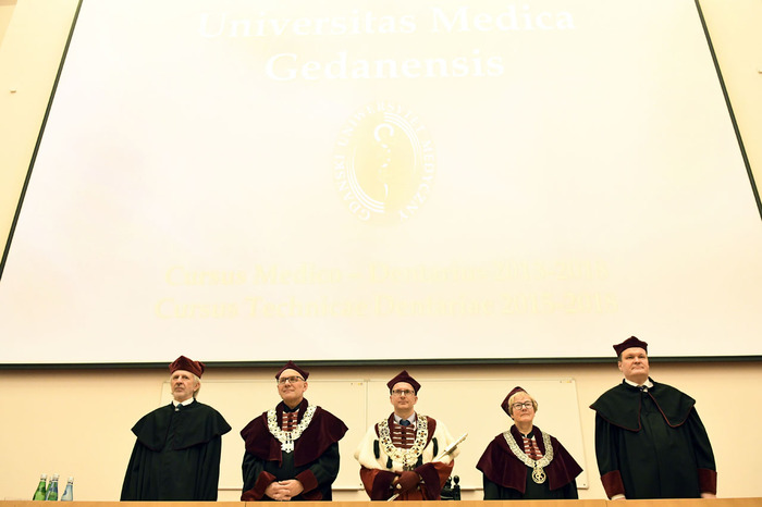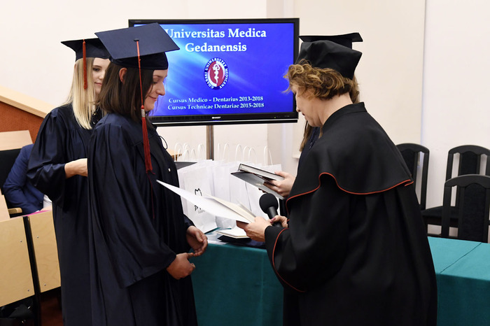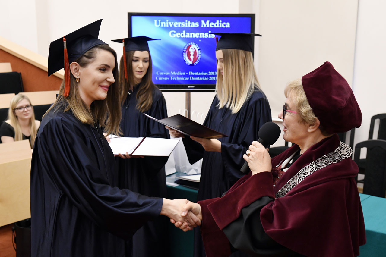 Wręczenie dyplomów ukończenia studiów absolwentom kierunku lekarsko-dentystycznego rocznika 2013-2018 i kierunku techniki dentystyczne rocznika 2015-2018 odbyło się 9 listopada 2018 r. w Auditorium Primum im. Olgierda Narkiewicza. W uroczystości uczestniczyli: rektor prof. Marcin Gruchała, prorektor ds. rozwoju i organizacji kształcenia prof. Jacek Bigda, dziekan Wydziału Lekarskiego (WL) prof. Maria Dudziak, prodziekani WL prof. Marek Niedoszytko i dr hab. Bartłomiej Ciesielski prof. nadzw., a także członkowie Rady Wydziału. Nie zabrakło zaproszonych gości, w tym wiceprezesa Stowarzyszenia Absolwentów GUMed prof. Wiesława Makarewicza, prezesa gdańskiego oddziału Polskiego Towarzystwa Stomatologicznego dr hab. Agaty Żółtowskiej i wieloletniego opiekuna studentów Wydziału Lekarskiego i Oddziału Stomatologicznego dr. Henryka Zawadzkiego oraz rodzin absolwentów.