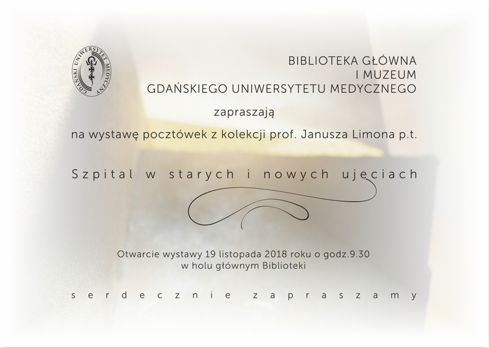 Architektura budynków dawnego Szpitala Miejskiego, późniejszego Państwowego Szpitala Klinicznego, Akademickiego Centrum Klinicznego i Uniwersyteckiego Centrum Klinicznego od dawna przyciągała fotografów. Kilka miejsc na terenie powstałego na początku XX w. szpitala zostało uwiecznionych na pocztówkach. Należą one do zbioru przekazanego przez prof. Janusza Limona jako dar dla Muzeum Gdańskiego Uniwersytetu Medycznego. Obok oryginałów zaprezentowane zostaną współczesne zdjęcia wykonane w tym samym lub możliwe zbliżonym miejscu oraz rewersy widokówek. Wystawę wzbogaci kilkanaście map terenów obecnego UCK oraz baner – zestawienie w jedną panoramę kilku historycznych ujęć zabudowań szpitala. Wystawę będzie można oglądać do 14 grudnia 2018 r.