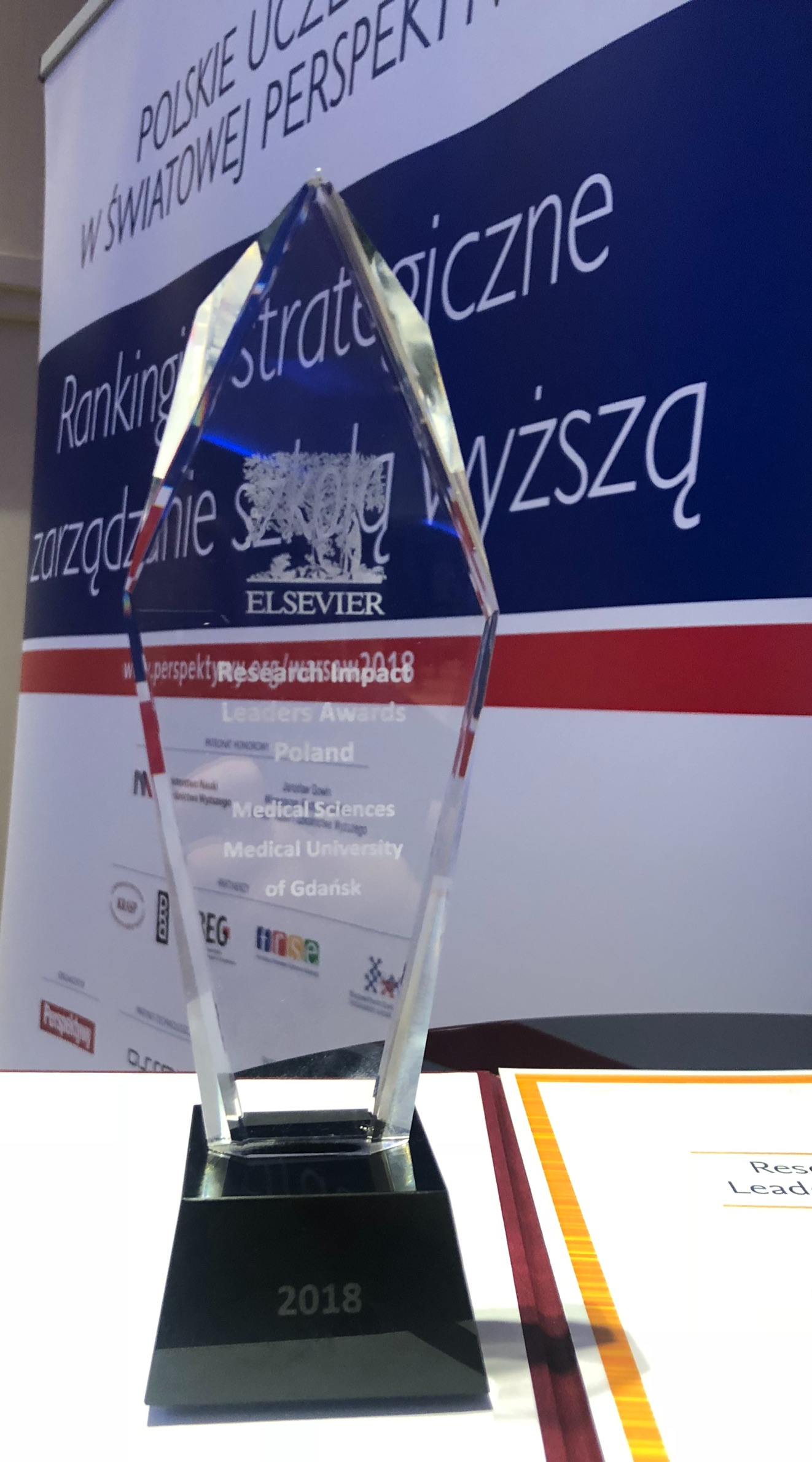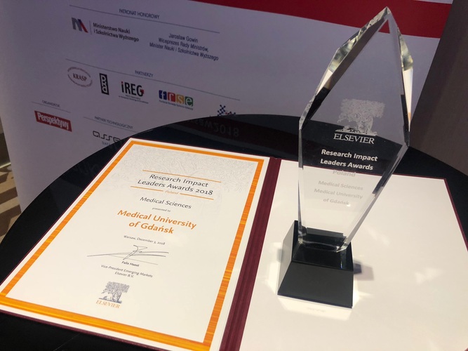 Gdański Uniwersytet Medyczny po raz drugi został laureatem nagrody ELSEVIER Research Impact Leaders Award 2018 w obszarze nauk o zdrowiu i medycznych. Tym samym Uczelnia obroniła ubiegłoroczną pozycję lidera w swojej kategorii. Nagrodę odebrał prorektor GUMed ds. nauki prof. Tomasz Bączek podczas uroczystej gali, która odbyła się 3 grudnia br. w Warszawie w ramach konferencji „Polskie uczelnie w światowej perspektywie. Rankingi a strategiczne zarządzanie szkołą wyższą”. Jej organizatorami byli: Konferencja Rektorów Akademickich Szkół Polskich, Polska Komisja Akredytacyjna i Fundacja Edukacyjna „Perspektywy”.