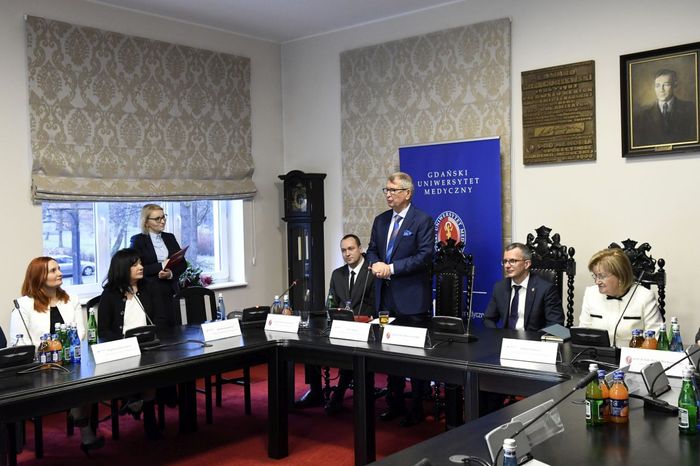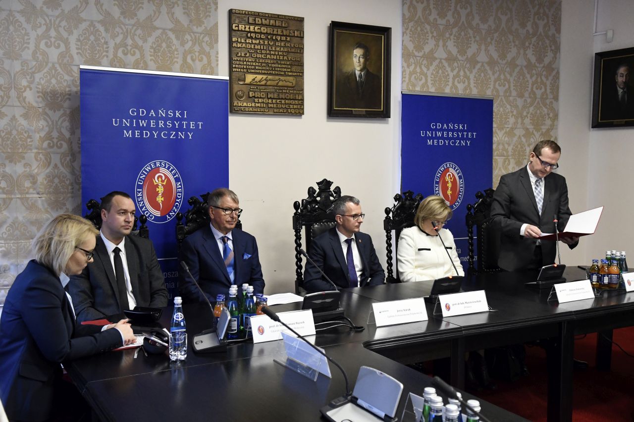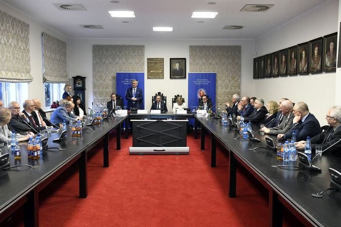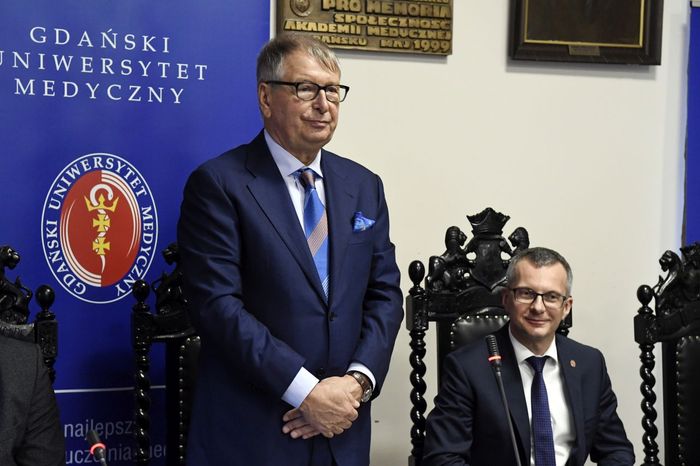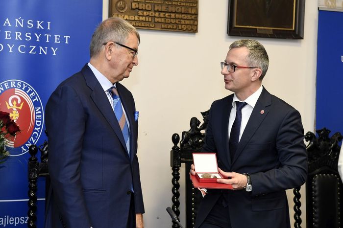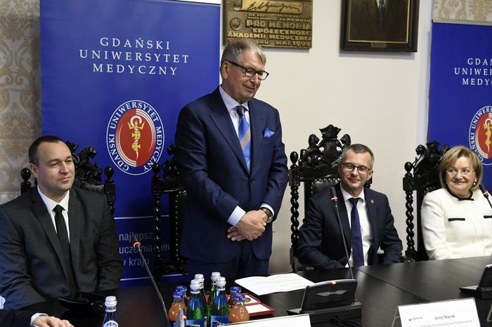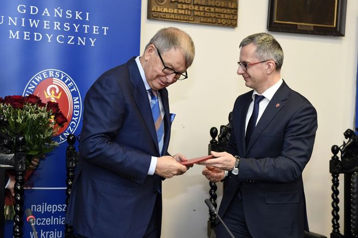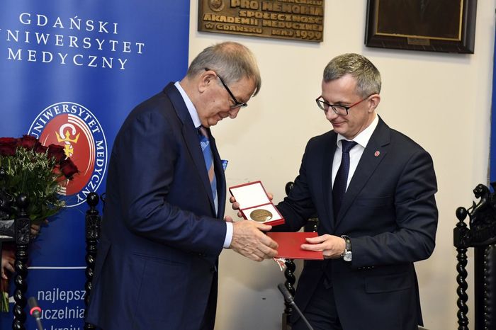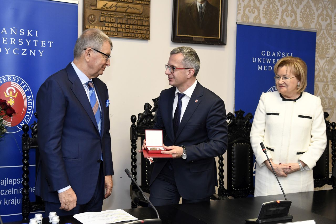Jerzy Starak, przewodniczący Rady Nadzorczej Polpharmy został uhonorowany Medalem „Zasłużonemu AMG”. Kapituła Medalu doceniła wieloletnią współpracę Polpharmy i GUMed, jak również prowadzone działania o charakterze innowacyjnym, badawczo-rozwojowym i edukacyjnym. Wyróżnienie wręczono podczas nadzwyczajnego posiedzenia Senatu Gdańskiego Uniwersytetu Medycznego, które odbyło się 12 grudnia br. W spotkaniu, któremu przewodniczył rektor prof. Marcin Gruchała, udział wzięli reprezentujący firmę Polpharma: Elżbieta Dzikowska – sekretarz Rady Nadzorczej Polpharmy, Bożenna Kozakiewicz – wiceprezes Zarządu Polpharmy, Wojciech Kuźmierkiewicz – prezes Zarządu Naukowej Fundacji Polpharmy i pierwszy Ambasador GUMed, Paweł Pietkiewicz – szef ds. rozwoju procesu technologii Grupy Polpharma oraz Magdalena Rzeszotalska – dyrektor ds. komunikacji i CSR. Obecni byli także licznie zgromadzeni członkowie kolegium rektorskiego naszej Uczelni, przedstawiciele Kapituły Medalu na czele z kanclerzem Kapituły prof. Wiesławem Makarewiczem, zastępca dyrektora naczelnego UCK ds. logistyki medycznej Adam Sudoł, Senatorowie GUMed oraz zaproszeni goście.