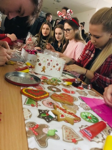 – Wspaniale, że nasi studenci nie tylko uczą się, ale naprawdę ładnie śpiewają po angielsku i nie tylko – podsumował prorektor ds. studenckich dr hab. Tomasz Smiatacz. Nad pierniczkowo-świąteczną atmosferą i tekstami czuwała ze swoimi studentami II roku zdrowia środowiskowego mgr Magda Warzocha. Koncert poprowadziła mgr Elżbieta Perepeczko, skutecznie zachęcając licznie przybyłych studentów do śpiewania, co nie zawsze jest łatwym zadaniem.