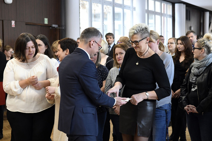 Społeczność Gdańskiego Uniwersytetu Medycznego spotkała się 21 grudnia br. w przedświątecznej atmosferze. Życzenia pracownikom w imieniu władz Uczelni złożył prof. Marcin Gruchała, rektor GUMed. Przepiękne polskie kolędy zaśpiewał Chór GUMed.