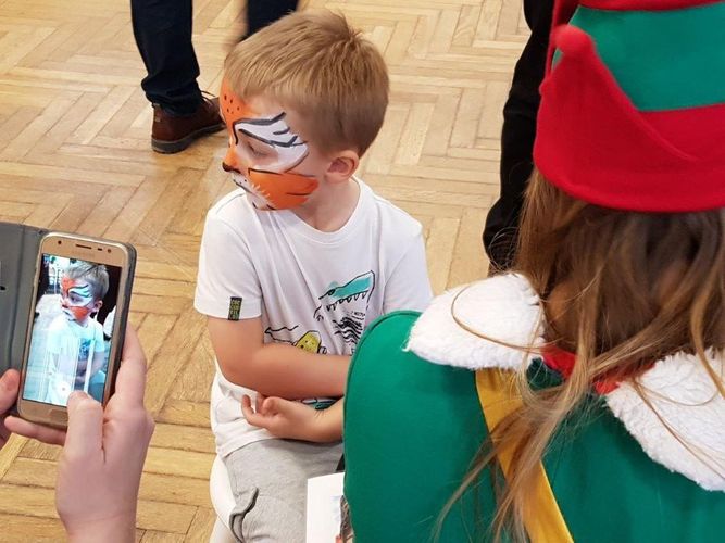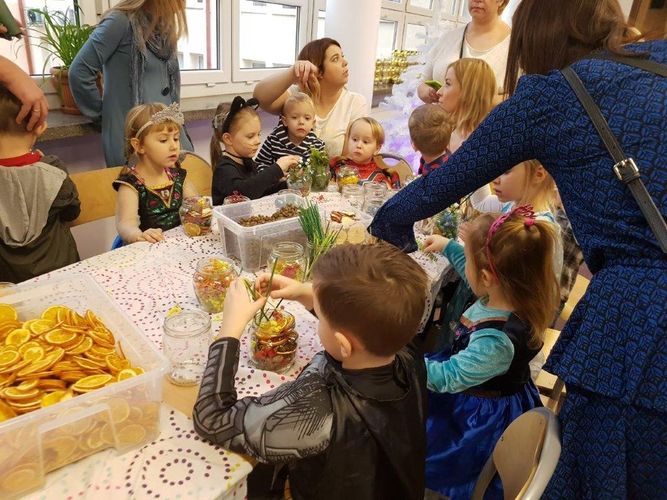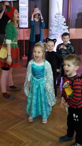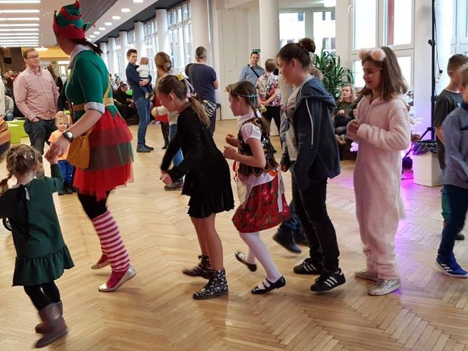 Zabawie towarzyszyła muzyka, a uczestnikom elfy – przewodnicy i animatorzy. Wielkim powodzeniem cieszył się kącik karnawałowego makijażu dziecięcego. Na zakończenie każde dziecko miało okazję spotkać się ze św. Mikołajem. Radosny i beztroski nastrój udzielił się całym rodzinom.