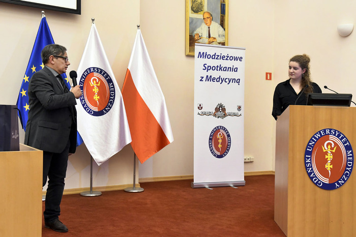 Młodzieżowe Spotkania z Medycyną (MSM) to inicjatywa popularnonaukowa pracowników Zakładu Prewencji i Dydaktyki GUMed oraz Okręgowej Izby Lekarskiej w Gdańsku. Celem projektu jest pokazanie młodym kandydatom do zawodu lekarskiego medycyny oderwanej od medialnych stereotypów. Za nami 54 odsłona wydarzenia, które odbyło się 29 stycznia br. w Atheneum Gedanense Novum. Ewa Nowak, uczennica kl. II LO w Sopocie przedstawiła prezentację „Neurony lustrzane”, dr hab. Paweł Zagożdzon, prof. nadzw. GUMed z Zakładu Higieny i Epidemiologii wygłosił wykład „Co za dużo to niezdrowo: problem nadrozpoznawalności chorób i niepotrzebnego leczenia”, a temat „Chirurgiczne leczenie otyłości patologicznej” omówił dr hab. Łukasz Kaska z Katedry i Kliniki Chirurgii Ogólnej, Endokrynologicznej i Transplantacyjnej. W ramach spotkania nie zabrakło oczywiście miejsca na pytania i dyskusję.