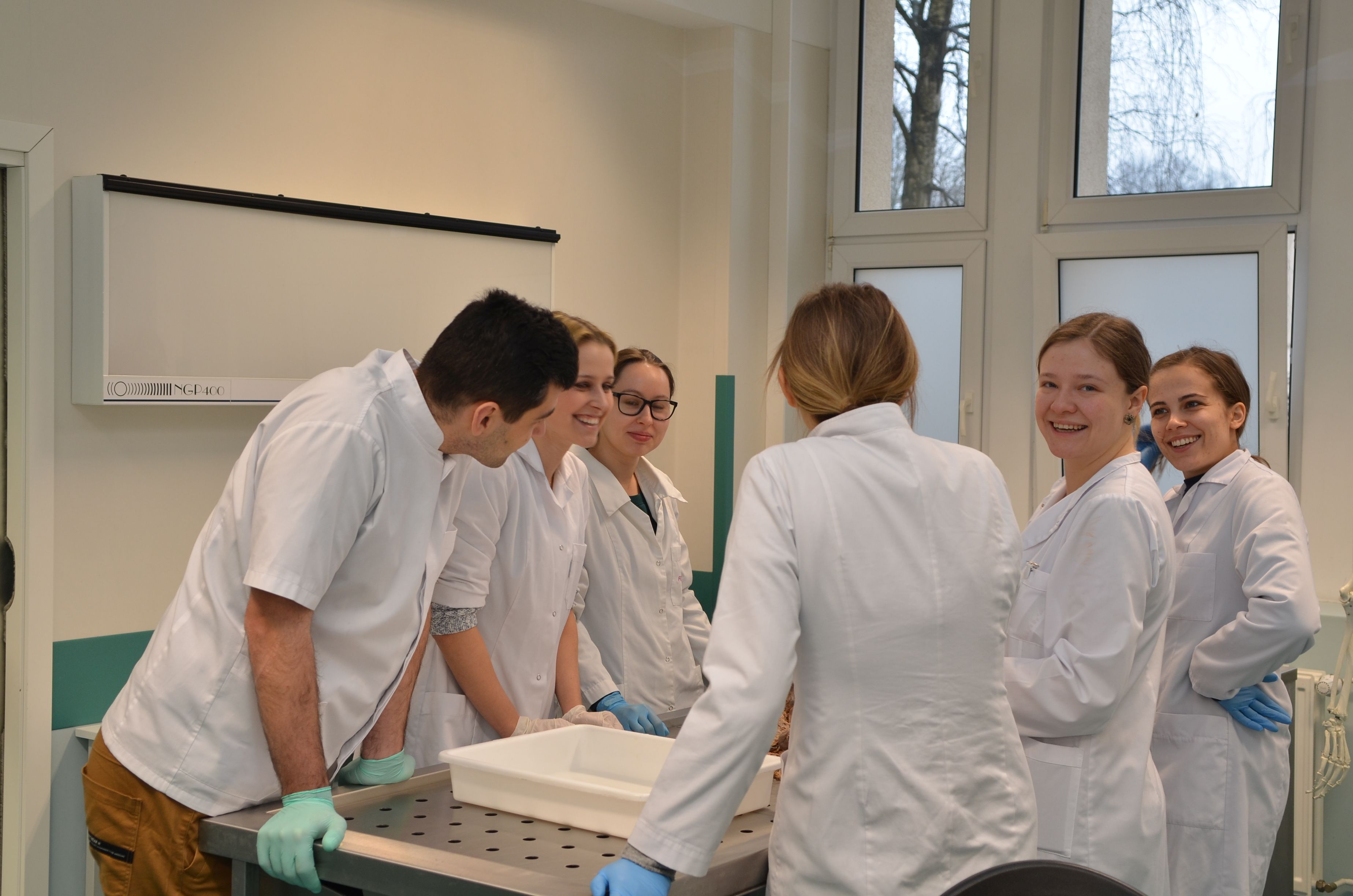 Kolejne spotkanie z cyklu „Podstawy anatomii w naukach klinicznych” odbyło się 2 lutego br. Tym razem członkowie SKN przy Zakładzie Anatomii i Neurobiologii wraz z SKN Ginekologii Onkologicznej zorganizowali warsztaty z unaczynienia narządów miednicy (szczególnie w kontekście nowotworów jajnika). Zajęcia miały formę warsztatów praktycznych w prosektorium Zakładu Anatomii i Neurobiologii. W warsztatach wzięli udział studenci z różnych lat kierunku lekarskiego. Nad poprawnością merytoryczną czuwał dr Jan Spodnik, opiekun SKN przy Zakładzie Anatomii i Neurobiologii. W najbliższym czasie planowane są kolejne spotkania z tego cyklu, między innymi we współpracy z SKN Ortopedii (tematyka – kończyna dolna), z SKN Laryngologii (tematyka – krtań, ślinianki, zatoki) oraz z SKN Kardiochirurgii (tematyka – naczynia wieńcowe).
