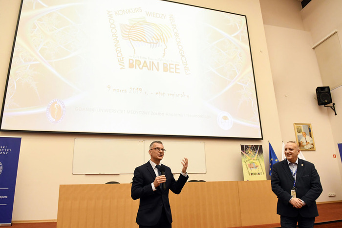 Za nami druga regionalna edycja Międzynarodowego Konkursu Wiedzy Neurobiologicznej “Brain Bee”. 9 marca br. w Gdańskim Uniwersytecie Medycznym, w sali im. prof. Olgierda Narkiewicza odbyły się eliminacje regionalne konkursu. Gospodarzami sobotnich eliminacji byli: dr hab. Ilona Klejbor, koordynatorka konkursu na region północno-zachodni oraz prof. Marcin Gruchała, rektor GUMed, który oficjalnie otworzył zmagania konkursowe. Uczestników przywitał również prof. Janusz Moryś, kierownik Katedry Anatomii GUMed. Tegoroczną edycję uświetnił wykład prof. Bartosza Karaszewskiego pt. “Neurobiologia, neurologia, neuroscience” oraz prezentacja nowości wydawnictwa Elsevier.