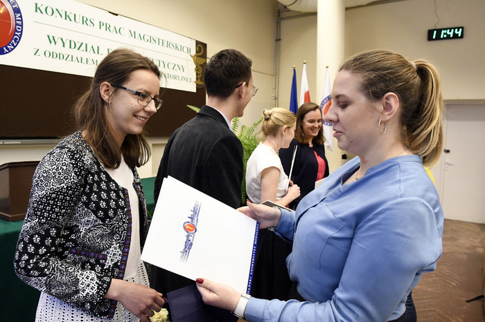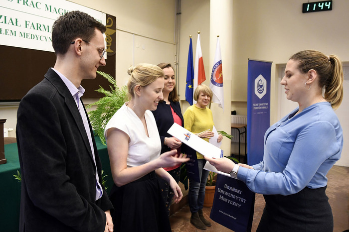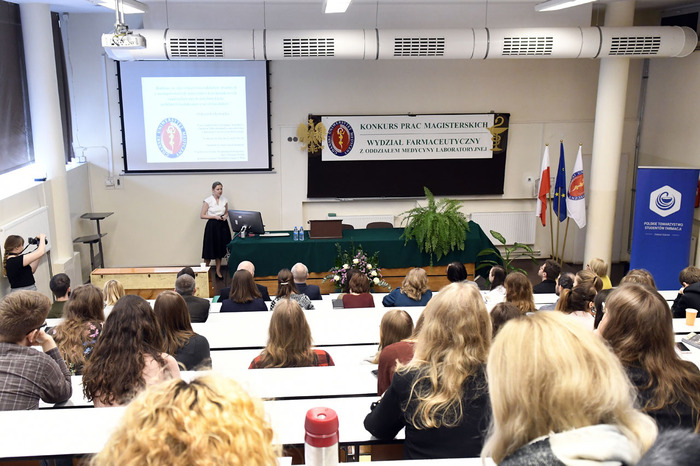 Tegoroczny Konkurs prac magisterskich wykonanych w roku akademickim 2017/2018 na kierunku farmacja wygrała Paulina Wiśniewska. Nagrodzona praca pt. „Zastosowanie reakcji aza-Michaela do syntezy nowych pochodnych izoksazolonu o potencjalnym działaniu przeciwbakteryjnym” powstała pod kierunkiem dr. hab. Jarosława Sączewskiego z Katedry i Zakładu Chemii Organicznej. Paulina Wiśniewska otrzymała również nagrodę publiczności. Drugie miejsce przyznano ex aequo Aleksandrze Konopce za pracę „Badanie in vitro właściwości układów złożonych z mezoporowatych żeli krzemionkowych zaadsorbowanych antybiotykiem, polimetylosiloksanu oraz etylocelulozy”, której promotorem jest dr hab. Krzysztof Waleron z Katedry i Zakładu Mikrobiologii Farmaceutycznej oraz Łukaszowi Golsztajnowi za pracę „Prawne i etyczne aspekty reklamy produktów stosowanych w populacji pediatrycznej”. Jej promotorem jest dr hab. Agnieszka Zimmermann z Zakładu Prawa Medycznego i Farmaceutycznego. Trzecie miejsce przypadło Joannie Brzezińskiej za pracę „Mezoporowate matryce krzemionkowe jako nośniki substancji biologicznie aktywnych o charakterze antyoksydacyjnym” wykonaną pod kierunkiem dr hab. Małgorzaty Grembeckiej z Katedry i Zakładu Bromatologii.