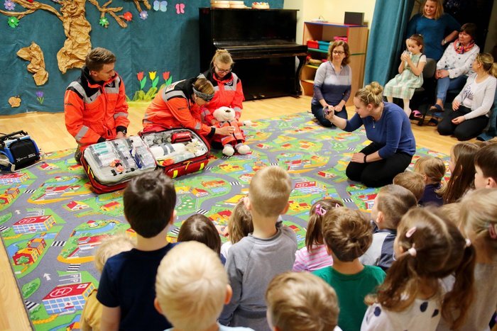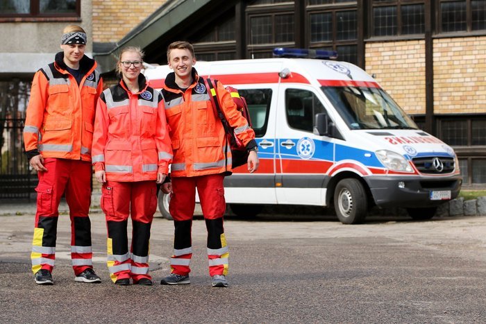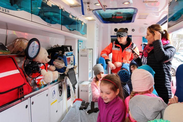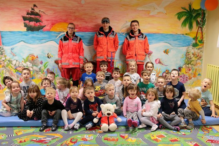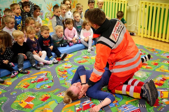 Studenci III roku ratownictwa medycznego – Dominika Barwikowska, Robert Krefta i Grzegorz Piotrowski – odwiedzili niepubliczne przedszkole językowo-artystyczne „Iskierka”. Spotkanie, które odbyło się 8 kwietnia br. pozwoliło przybliżyć dzieciom zasady bezpieczeństwa w różnych sytuacjach. Najmłodsi z zaangażowaniem uczestniczyli w prezentowaniu różnych sposobów opatrywania ran, udzielania pierwszej pomocy oraz dowiedziały się jak wezwać pogotowie gdy zdarzy się coś, co zagraża życiu człowieka.