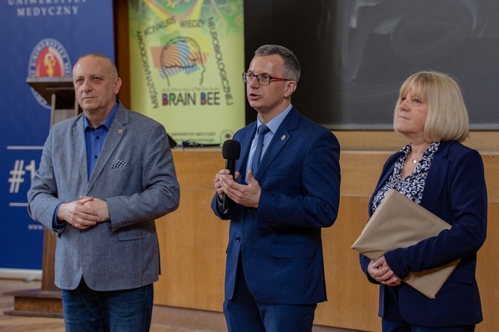 Natalia Koc (II LO im. płk. Leopolda Lisa-Kuli, Rzeszów), Jan Jakub Domański (XIV LO im. Stanisława Staszica, Warszawa) i Maciej Małolepszy (IV LO z Oddziałami Dwujęzycznymi im. Stanisława Staszica, Sosnowiec) to finaliści ogólnopolskiego etapu Międzynarodowego Konkurs Wiedzy Neurobiologicznej Brain Bee, który odbył się 27 kwietnia br. w Collegium Biomedicum GUMed. Organizatorem wydarzenia była Katedra i Zakład Anatomii przy aktywnym udziale członków Studenckiego Koła Naukowego Neurobiologii Vermis. Konkurs składał się z: testu, części praktycznej anatomicznej, części praktycznej histologicznej oraz części ustnej w języku polskim i angielskim.