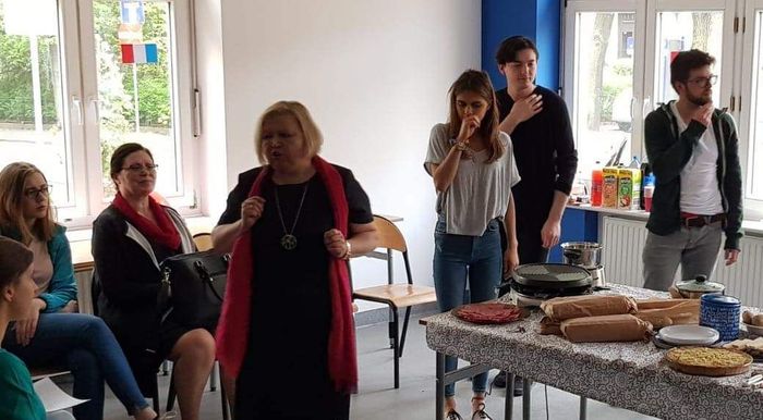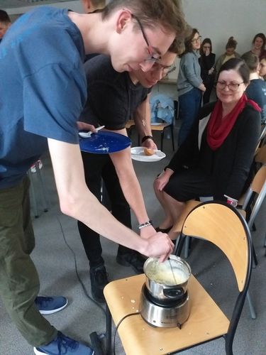 Nie zabrakło również specjalności kuchni francuskiej. Była okazja spróbować quiche lorraine, wykonanej przez Konrada, tarty przygotowanej przez Aleksandrę, ciast francuskich Alicji, fondue, raclette i innych smakołyków.