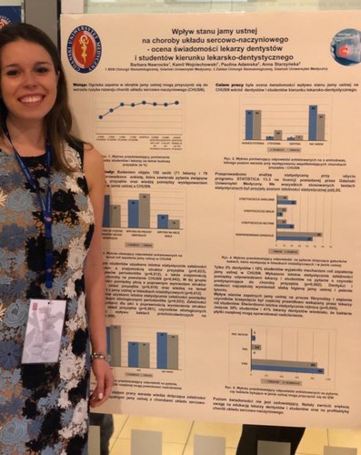 W sesji plakatowej kardiologii zachowawczej wyróżnienie otrzymała Barbara Nawrocka z SKN Chirurgii Stomatologicznej za pracę „Wpływ stanu jamy ustnej na choroby układu sercowo-naczyniowego – ocena świadomości lekarzy dentystów i studentów kierunku lekarsko-dentystycznego”. W pracy oceniano postrzeganie i świadomość wpływu zapaleń w obrębie jamy ustnej na rozwój chorób układu sercowo-naczyniowego. Badanie przeprowadzono wśród lekarzy dentystów i studentów kierunku lekarsko-dentystycznego. Autorami są Barbara Nawrocka i Kamil Wojciechowski z SKN Chirurgii Stomatologicznej oraz lek. dent. Paulina Adamska i dr hab. Anna Starzyńska, prof. nadzw. GUMed i kierownik Zakładu Chirurgii Stomatologicznej. Natomiast w sesji plakatowej kardiologii inwazyjnej i kardiochirurgii II miejsce zajęli: Jakub Osowski (IV rok, kierunek lekarski), Wioleta Kurpińska-Kac (IV rok, kierunek lekarski) oraz Natalia Sobczyk (V rok, kierunek lekarski).