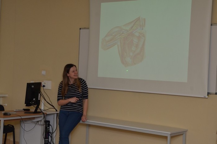 Podczas części teoretycznej studenci zapoznali się z elementami układu mięśniowego. Część praktyczną dotyczącą układu mięśniowego i stawowego kończyn poprowadzili studenci GUMed, wykorzystując dostępny materiał dydaktyczny Zakładu Anatomii i Neurobiologii. Warsztaty, zarówno teoretyczne, jak i praktyczne, odbyły się pod czujnym okiem opiekuna SKN przy Zakładzie Anatomii i Neurobiologii dr. Jana Spodnika. Szczególny nacisk został położony na możliwe interdyscyplinarne zastosowania wiedzy anatomicznej w projektowaniu endoprotez stawowych z uwzględnieniem przebiegu mięśni i ich wpływu na stawy. Prowadzący dokładnie omówili budowę oraz funkcję stawu biodrowego i kolanowego, jako, że są to dwa stawy najczęściej poddawane endoprotezoplastyce.