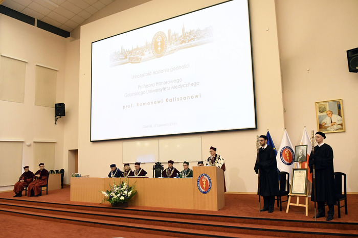 Gdański Uniwersytet Medyczny ma nowego Honorowego Profesora. Godnością został uhonorowany pośmiertnie prof. Roman Kaliszan. Uroczystość odbyła 17 czerwca br. w Auditorium Primum im. prof. Olgierda Narkiewicza w budynku Atheneum Gedanense Novum.